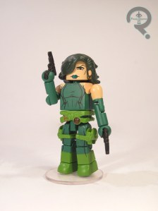 Next, it’s Strucker’s second in command, Viper…er Madame Hydra…no wait, um…hmmm. Yeah, I can’t make up my mind. That’s okay, though, neither could Diamond, since she’s listed as Madame Hydra on some of the boxes and as Viper on the others. I prefer Madame Hydra because it avoids any connotations to the lackluster interpretation of the character in the recent Wolverine movie. Madame Hydra has only really had one look, and that’s the one they went with here, so that works out. She’s on the standard body, and has all the usual stuff associated. She features 4 sculpted add-ons: hair, belt, and dual leg holsters. The belt is a new piece I believe. The hair is a reuse from one of the figures in the Femme Fatales set, Dawn I think. The holsters are from the Avengers movie line, and were most recently used on the comic version of Maria Hill, second in command of SHIELD, which is kind of a neat touch, I think. The paint is a bit of a mixed bag on this figure. All of the detail lines are nice and sharp, and I particularly like the face, which even features a scarred eye behind the peek-a-boo hair, but the transitions on the gloves and boots are incredibly sloppy. Not enough to ruin the figure, but enough to be very annoying. Madame Hydra includes two handguns, a bullwhip, and a clear display stand.
