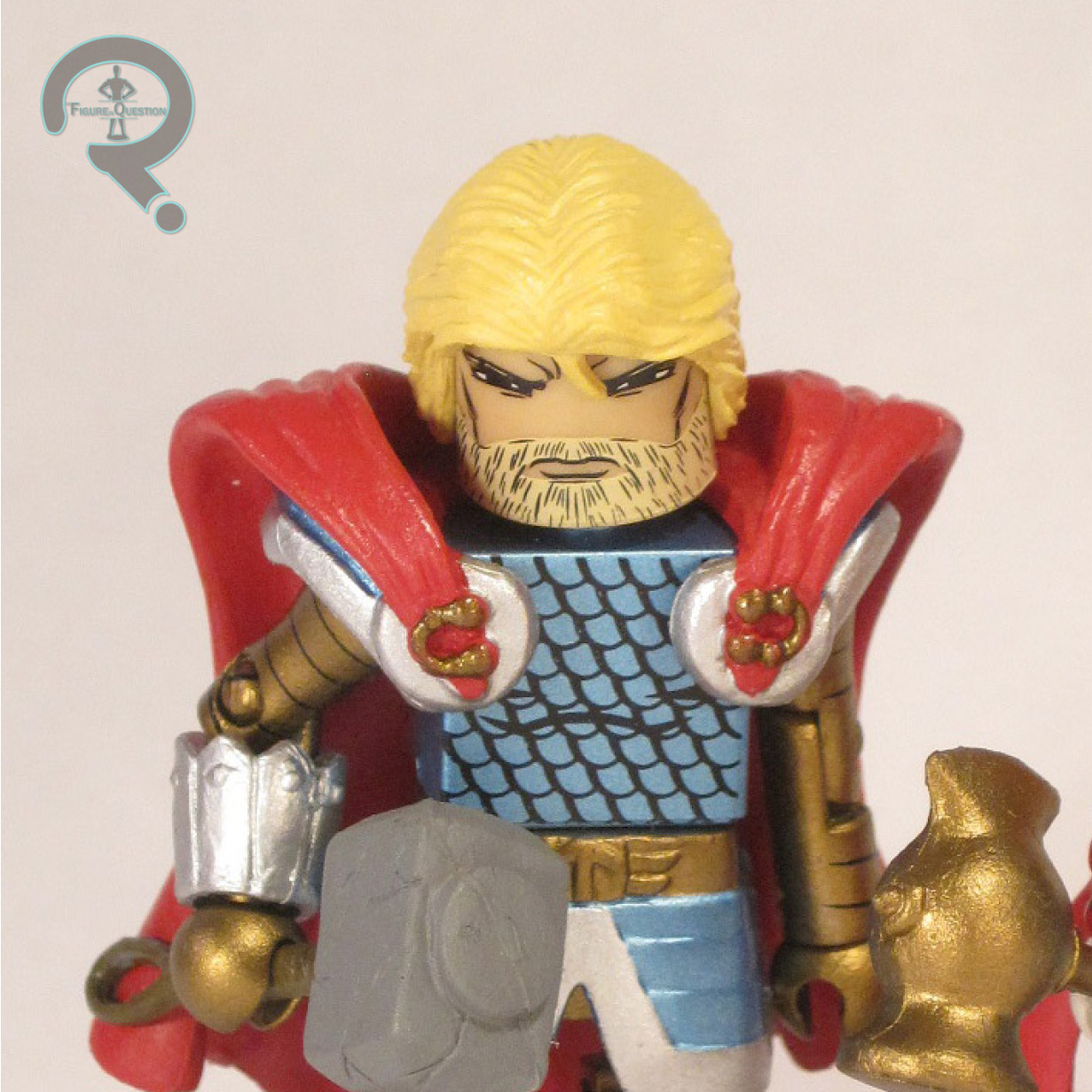 Like I said above, this is Thor as he appeared during one of the ongoing stories during Simonson’s run on the series. It’s a pretty good design, and it translated well to the Minimate aesthetic, so it works for me. Armored Thor features 6 sculpted add-ons: helmet, cape, arm-brace, skirt, and boots. Everything was brand new and I don’t believe we’ve seen any of it used again, making this a very unique figure. Everything is very cleanly sculpted and looks pretty good. With all that sculpting, it would have been easy for Diamond to phone it in on the paint, but they really didn’t. The basic paint apps are all very clean, plus he’s got some great detail work on his arms, legs, torso, and head. The torso has a nice chainmail texture, and the head has really cool grimacing face with a very finely detailed beard. Armored Thor included two accessories: a spare hairpiece and his hammer Mjolnir. Near as I can tell, both of these pieces were new too, but they’ve seen a fair bit of reuse.