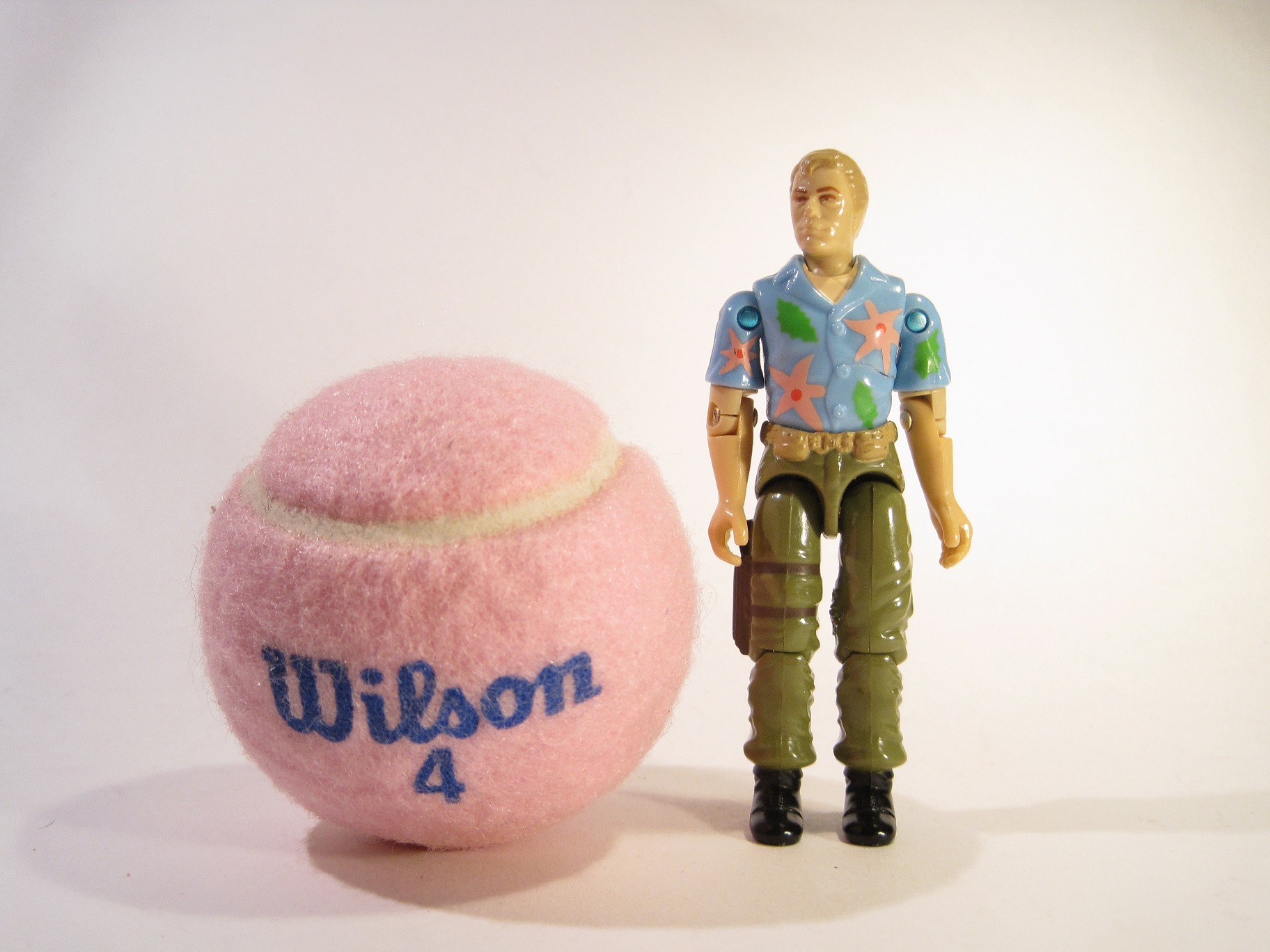 ChucklesWilsonChuckles was released as part of the 6th series of GI Joe: A Real American Hero, which was distributed in 1987. The figure is 3 ¾ inches tall and features 14 points of articulation, all standards for the line. Chuckles featured an all new sculpt, which was only used for this particular figure. The sculpt doesn’t have the detail of Flint or the elegant simplicity of Snake Eyes, but it’s not too bad. The head seems a bit strange, especially the ears, which have an odd shape to them. The rest of the sculpt is fine. Nothing incredibly impressive, but far from the worst the line had to offer. The paint work on Chuckles is somewhat basic, but it’s all well applied, and the shirt in particular looks really great. Chuckles included a handgun and a holster, but mine was purchased loose without those pieces.