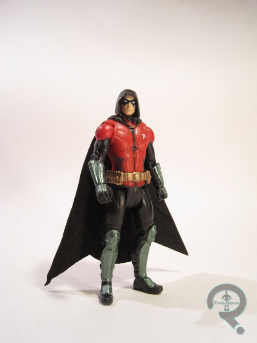 Robin was released in the fourth assortment of Mattel’s DC Comics Multiverse line, which is their current “collector oriented” line of 3 ¾ scale figures. Robin is based on the character’s appearance in the upcoming Batman: Arkham Knight game, which seems to take fair bit of influence from the Damian Wayne Robin design. The figure clocks in at just about 3 ¾ inches tall and he features 18 points of articulation. Robin’s articulation scheme is the same as that seen on the Christopher Reeve Superman. It’s not bad, and it’s certainly better than what we saw on Zod, but he really would benefit from some ankle articulation, some sort of swivel in his upper arms, and maybe a mid-torso joint. As it is, the figure’s posing options are rather limited, which leaves him rather stiff looking. He’s good for a standing pose, but not much else. Robin appears to have a completely unique sculpt. Overall, it’s an okay sculpt, but it has some rather glaring faults. His head is a bit too small and his torso is too large, resulting in some serious pin-headedness. His torso is also rather flat, and his waist seems to sit too low, making the torso too long. All that being said, the sculpt does have some nice detail work, especially in the armor’s various engravings. The cape is not sculpted, but rather made of cloth. The material used for capes in this line seems to be inconsistent. They go back and forth between cloth and plastic with very little rhyme or reason. I personally prefer the sculpted capes, so the cloth isn’t a huge plus for me. This one’s not too bad, so there’s that. Robin’s paint is decently handled. It’s relatively straight-forward; there aren’t any washes or different finishes or anything. For the most part, it’s rather cleanly applied, but there are one or two areas, like the shoulders, where there is a bit of slop. Robin includes no accessories. His right hand looks as if it should hold a staff or something, so it would have been nice to get something, anything. As is, the figure feels light for the price.