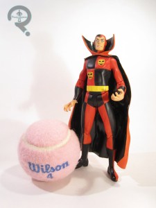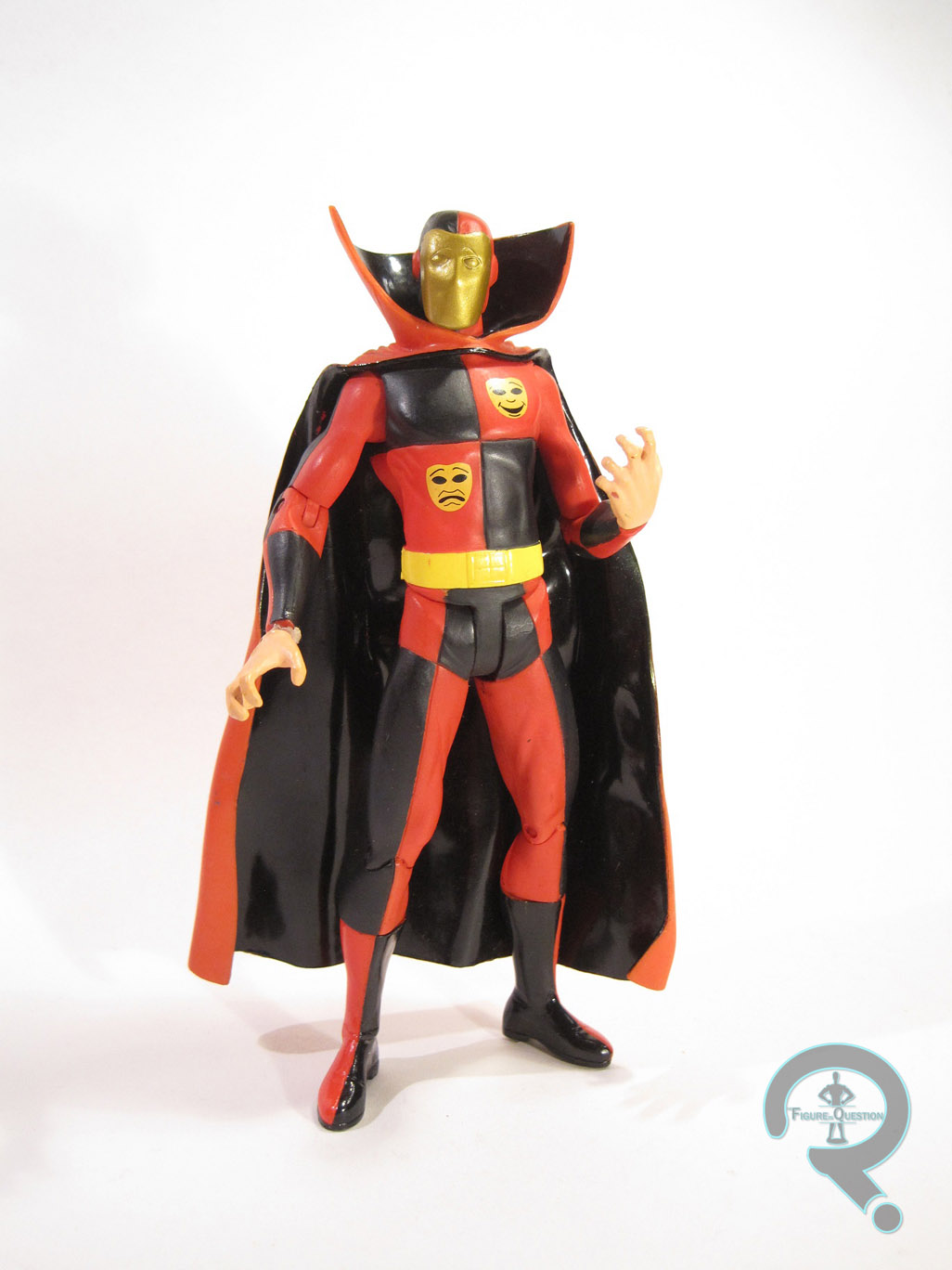 Psycho Pirate was released in the first series of DC Direct’s Crisis on Infinite Earths line. The Psycho Pirate depicted here is the second version of the character, Roger Hayden. Hayden was created in the 60s, which means he showed up during the Silver Age, but his first appearance is clearly set on Earth 2, making him a Golden Age villain, sort of kind of. Basically, his deal is that he’s got a mask that lets him control emotions. He’s based on his appearance in Crisis, as depicted by George Perez. The figure is about 6 ¼ inches tall and he features 15 points of articulation. DC Direct was pretty big on everybody getting their own sculpt at the time, so Psycho Pirate’s sculpt is 100% unique to him. It’s a pretty great sculpt, too. The proportions are all pretty decent, and the face is undoubtedly a George Perez face. I also love how expressive the hands are. Perhaps the only issue with the sculpt is how flat the upper arms are. The paint work doesn’t quite match up to the sculpt, but it’s not bad. For the most part, things are clean, but there are some issues with bleed over on the sculpted lines. The red also has a tendency to bleed through where it shouldn’t. Also, while I like the boots having a glossy sheen, I’m not quite sure why the inside of the cape has been given the same treatment. It looks fine, but it just seems odd. On the plus side, the colors are nice and bold, and the work on the face is very nice. Psycho Pirate includes his Medusa Mask, which fits very nicely on his face, and a display stand that reads “Crisis on Infinite Earths.”