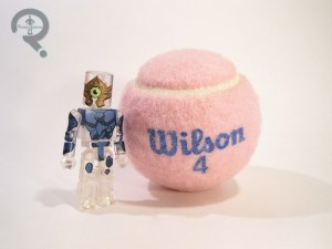 When you’re making a set entirely out of re-used pieces, sometimes you end up with a figure that’s more than a little off. Case in point with the final figure in the set (and, incidentally, my personal favorite), Azetlor. The character has a few designs in the game, and this one doesn’t really look much like any of them. Which isn’t to say it’s a bad figure, just not a particularly accurate one. The Azetlor is about 2 ½ inches tall and he’s got 14 points of articulation. The figure pretty much the standard Minimate body, but with a DC Minimates Sinestro head in place of the standard one. What’s interesting is that all of the prototype shots show this guy with the normal head, but they decided to change it somewhere along the way. So, with a mostly basic build, he relies on paint to make him work. He’s molded in clear plastic, with details painted on here and there, making him look like bits of debris floating to make up a vaguely human shape. It’s all done very nicely. All of the lines are nice and clean, and the blue parts have some impressive shading, which gives the figure some much needed dimension. The Azetlor included no accessories
