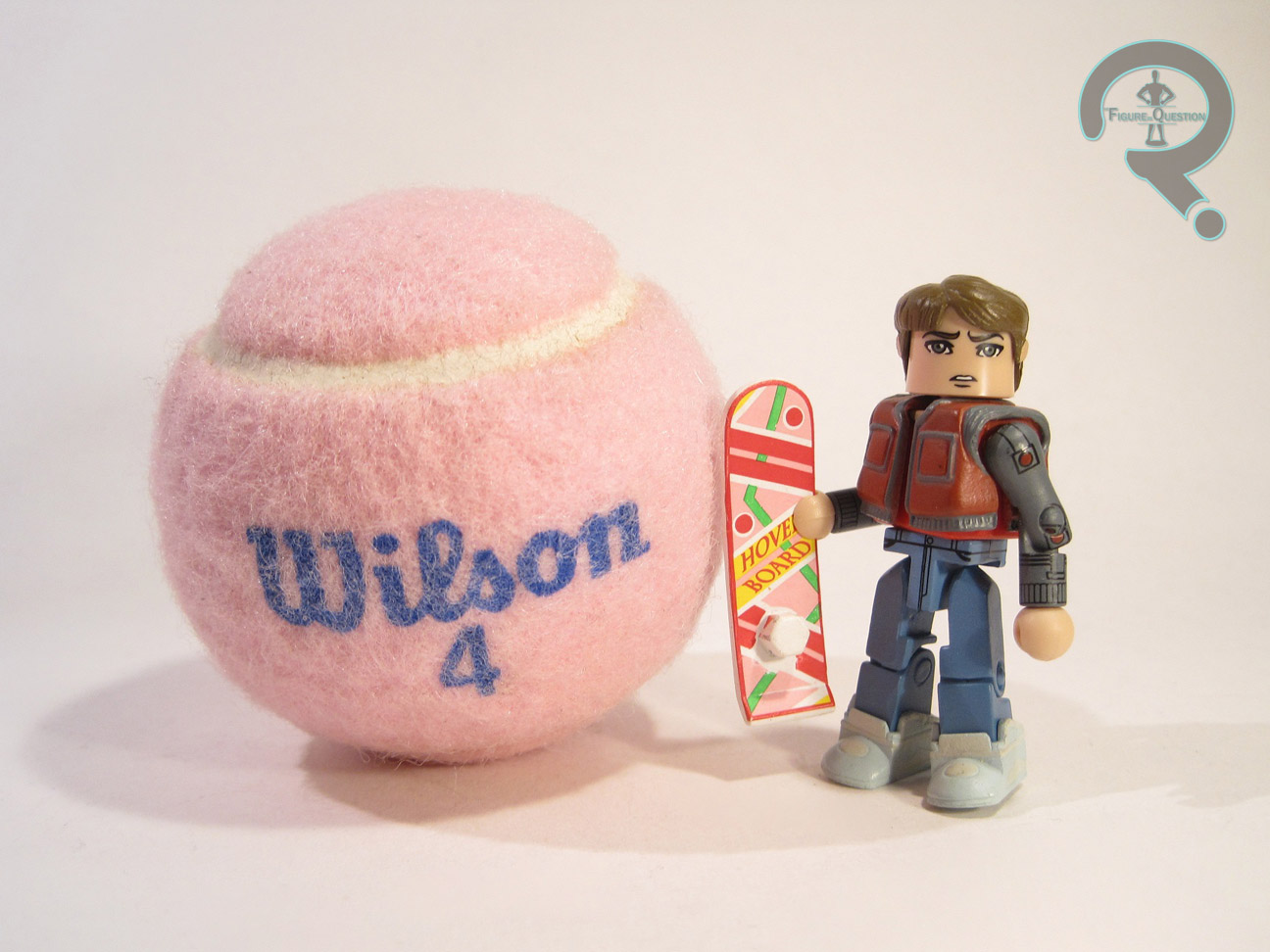 Marty is the star of the movies, and he has a fair number of looks over the course of the three films, so he was a natural fit for multiple figures. His first figure in this set is based on his appearance while he’s exploring the 2015 timeline. The figure is about 2 ½ inches tall and he’s got 14 points of articulation. He’s built on the standard Minimate body, with a unique set of feet to represent Marty’s self-lacing shoes, as well as add-ons for his jacket and hair. All of these pieces were new to this figure, though the feet and hair would see a few re-uses down the line. All of the pieces are well sculpted, thought the hair seems a little bit off for Michael J Fox. The paint is okay, but not amazing. Everything is clean, and there’s some great detail work on the clothing. Unfortunately, the face looks nothing like Fox, and it’s only compounded when added to the hair. I don’t really know what happened, but that’s just not him. Marty included a hoverboard that, aside from the forgivable omission of the Mattel logo, is a spot on recreation of the one from the movie.