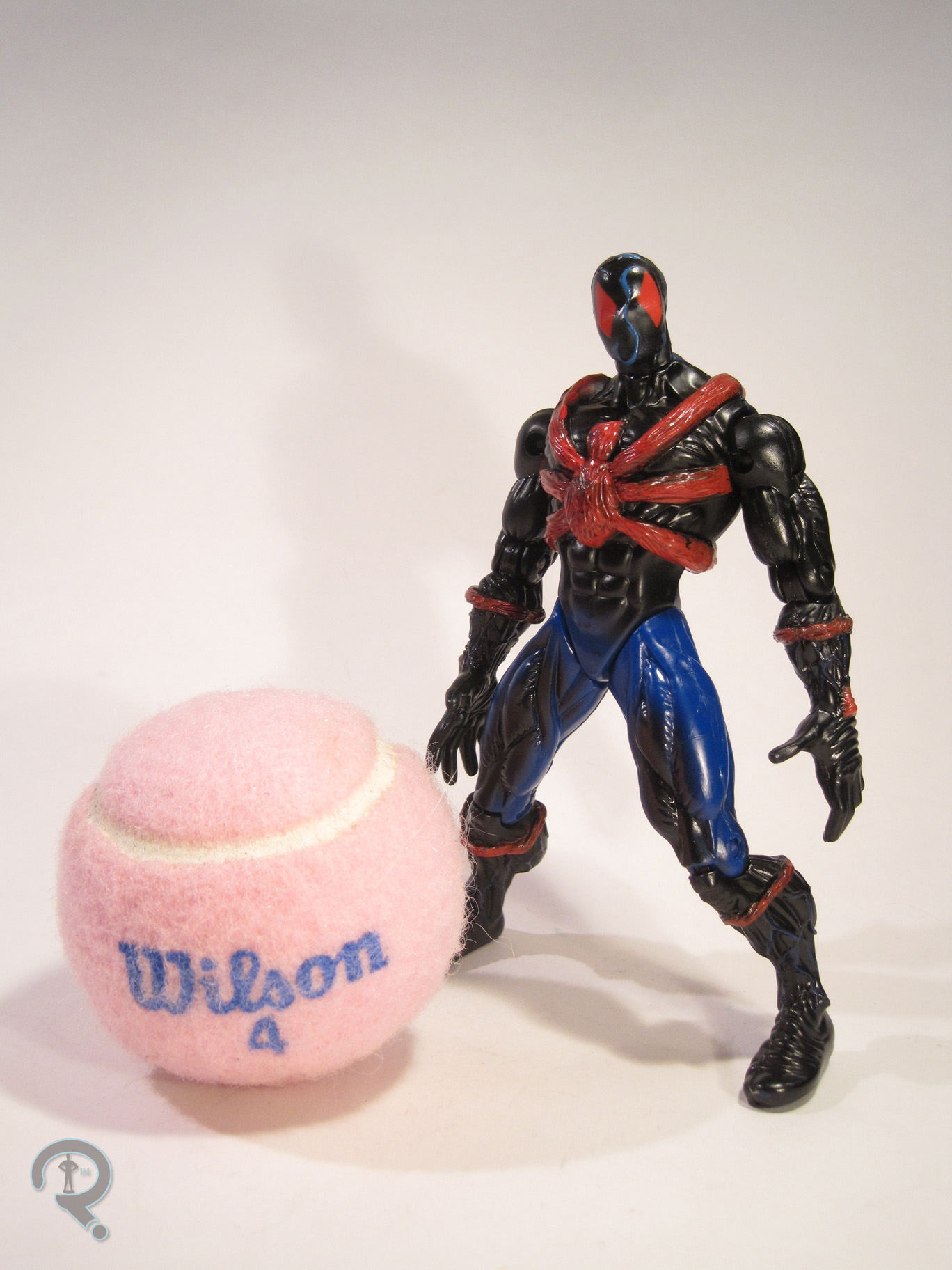 Moving downward on the scale chart, we get to my personal favorite figure from the set, Goliath. He’s based on Hank Pym’s first costume for his third identity. Confused? That’s okay. Most people are. This figure ends up being the most unique of those offered in the set, mostly due to his color-scheme. The figure stands a little over 6 inches tall and has 32 points of articulation. He’s based on the ML Infinite Series Bucky Cap body, just like the single release Giant-Man. The body’s a pretty great base for a lot of characters, and it fits Hank rather nicely. Goliath gets a new head sculpt; it’s a little on the soft side as far as details go, but it’s pretty good overall. It’s a nice, classic hero-style head, and it isn’t too struck with the level of same-ness we’ve seen on a lot of Hasbro’s male heads in this scale. The figure also gets a new add-on piece for his belt, which is a little bit loose, but pretty well sculpted. While I like this figure a lot, oh boy did he get hit with some seriously messy paint. The colors are pretty nicely chosen, but the flesh tones are really thick and goopy, and the yellow has been applied too thinly in many areas, causing the blue of the plastic to bleed through. He’s also got some random scratches of blue on both forearms, where the glove paint has chipped. Viewed as a whole, the figure is alright, but he would have been a lot nicer if the paint had been even a little bit better. Like Giant-Man, Goliath has no accessories of his own.