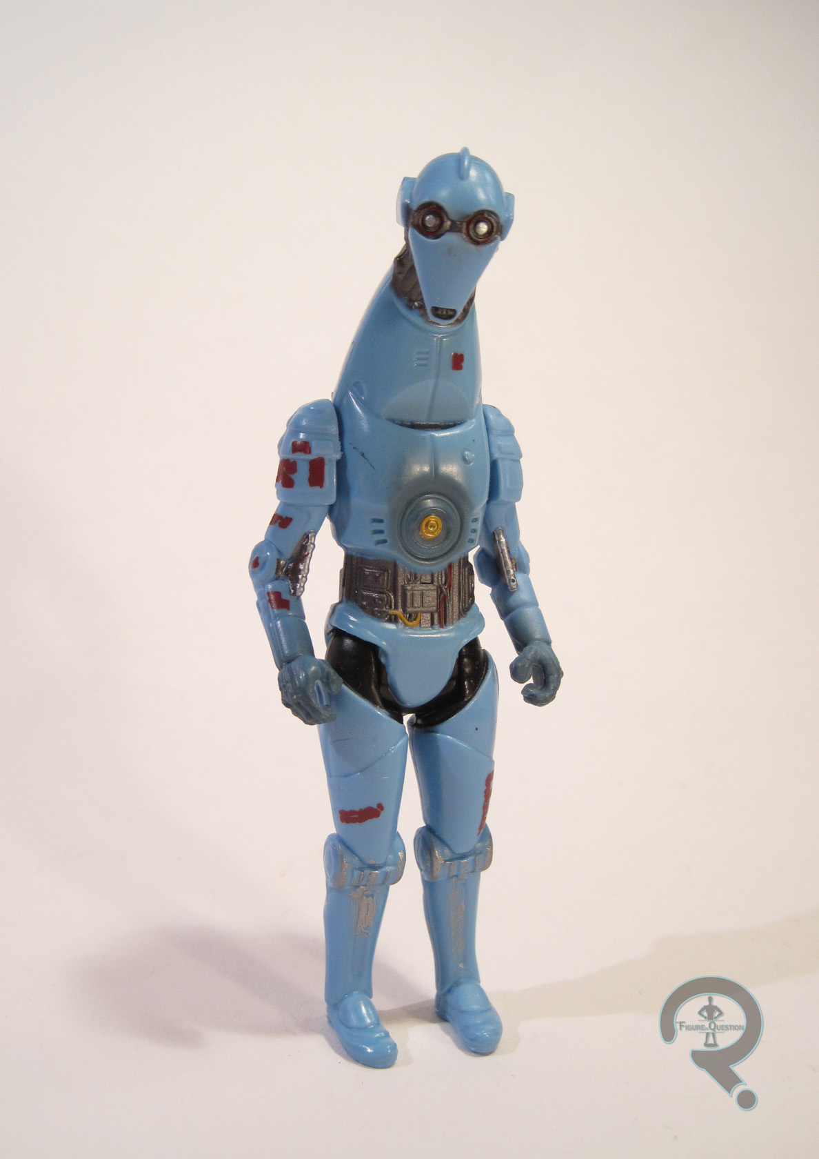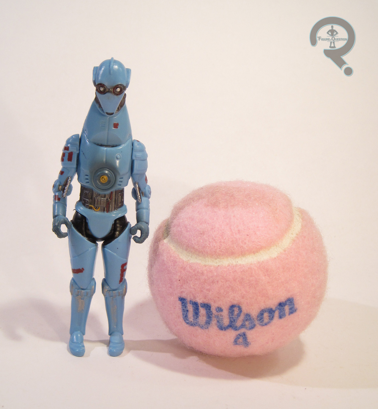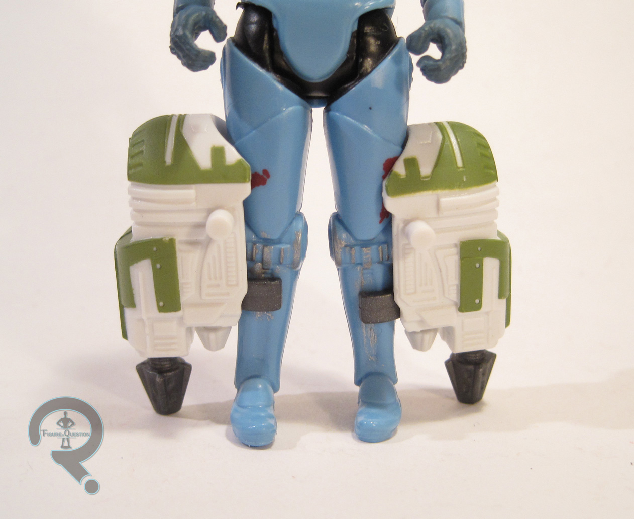 “PZ-4C0 is a constant fixture in Resistance base control rooms, offering tactical data and communications support during important operations.” So, there’s your background on this character. Check out that epic tale. Anyway, PZ-4C0 was released as part of the second round of basic 3 ¾ inch The Force Awakens figures. She’s part of the second assortment of the “Jungle” sub-set of figures. She stands about 4 inches tall and has 5 points of articulation. PZ has an all-new sculpt, based on her design from the movie. The design is a tweaking of the basic protocol droid design introduced with C-3PO, with a slightly more alien set of proportions. I don’t know that it’s a perfect design; the functionality of the neck joint is definitely a bit impaired; but, it’s pretty visually interesting, and definitely fits in well with the other designs we’ve seen so far. The quality of the sculpt is actually pretty good. The armored parts are more smooth, and they have a nice symmetrical balance to them, and the circuitry bits are well detailed and add a lot of depth to the figure. PZ’s color scheme is definitely another unique aspect of the figure. The main blue color is a nice change of pace, and the painted accents and scuffs are all pretty cleanly done, so that’s cool. PZ-4C0 includes no character specific accessories, but she does include two pieces for the weird build-a-thingy. These are a set of rocket attachments, and they can be placed on her legs, which makes for a sort of a nifty look.