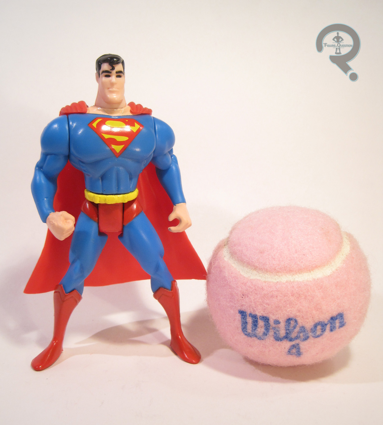 Capture Net Superman was part of the first series of Kenner’s Superman: The Animated Series line. Of the seven Superman variants released in the first series, he was one of two that could be classified as a “normal” Superman, and since the other one was saddled with a quick-change feature, this was the one most people considered the “default.” The figure stands 5 inches tall and has 6 points of articulation. The S:TAS figures were all about that waist movement! Of all the figures offered in this line, this Superman has the virtue of being the most on-model. Of course, that only makes him the closest of the off-model figures, which isn’t saying a whole lot. The figure’s upper half isn’t too far off. The head is a little more elongated than it should be, and is certainly not as nice as a few of the later offerings, but it’s not terrible. The torso and arms are a bit more muscular than the show design, but once again, not terrible. The cape is a fairly decent match for the show, so that’s good. The design kind of goes off the rails on the legs; one of the staples of the Bruce Timm aesthetic is the streamlined nature of the legs. That’s definitely not shown here. They’re a perfectly fine sculpt, but they’re just not accurate. As a whole, the sculpt is nice and clean, and is certainly pleasing to look at, but it falls short of the show design. Superman’s paint work is generally pretty good, apart from one small issue. See, my figure is one of the initial wave of figures, which were rushed into production to be in stores by the time of the cartoon’s premier. Instead of proper eye detailing, corners were cut, and he instead has a solid black blob in place of his eye. Later waves would correct this issue, but no such luck on my figure. It’s a little odd, but honestly not that bad once you move past it. The rest of the paint is nice and bright, and makes him stand out quite nicely. The blue’s probably a little too bright to be show accurate, but why start being accurate now? The figure’s name comes from his one accessory, which is a big missile launcher thing, which fires two missiles with a net attached. As goofy as it is, it’s actually kinda cool, especially since the net is shaped and painted like his logo.