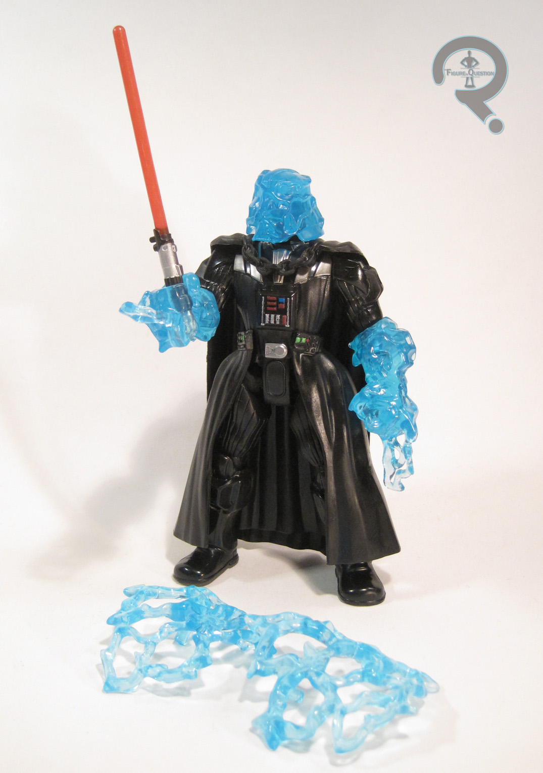 I’ve actually reviewed a lot of this guy before. Vader, unlike the others in this set, goes for a very scene specific look. Namely, the scene where he’s getting electrocuted by the Emperor. That seems a little morbid for a kid-aimed toyline, but okay! The torso, upper arms, legs, cape, and skirt are all exactly the same as the single-release Vader. Same sculpt, same paint, same everything. What’s new are the head and lower arms, which take the previously used pieces, add a bit of “electricity” detailing to them, and cast them in a cool translucent blue. Of course, to be truly accurate to the scene, he should be missing his right hand, but I guess that would be too morbid for the kid’s toy. Vader is packed with the same extra as his single-packed counterpart, a lightsaber, as well as two electricity effect pieces.