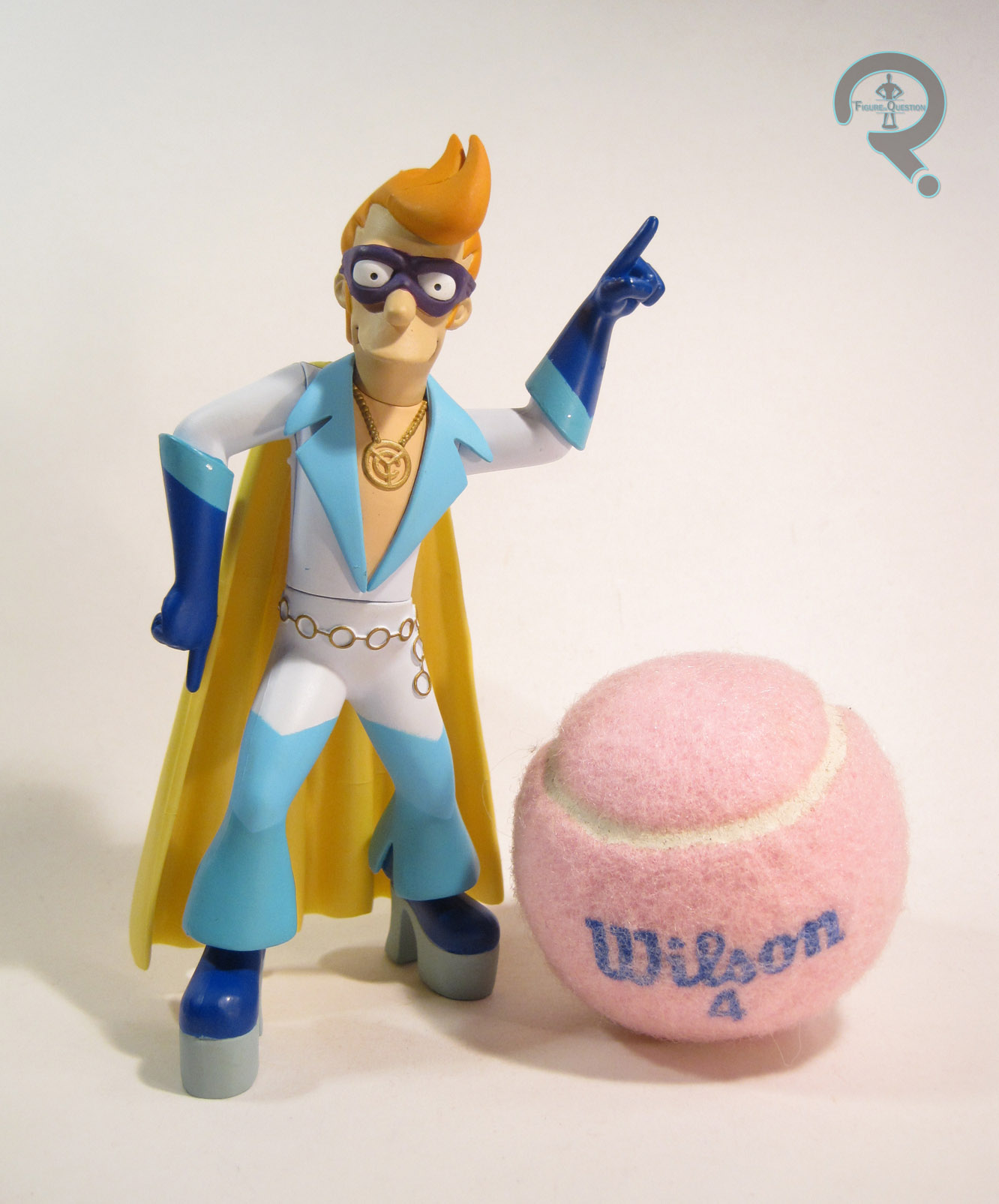 Captain Yesterday was released in Series 4 of Toynami’s Futurama line. Series 4 was the first series to include pieces of the line’s second Build-A-Figure, Robot Santa. Captain Yesterday is based on Fry’s appearance in the fourth season episode “Less Than Hero,” where he and Leela gain super powers and decide to fight crime as the New Justice Team. The figure is about 6 inches tall and has 4 points of articulation. While the MAC figures, and by extension some of Toynami’s figures, had a fair bit of articulation, the later figures only had the most basic movement, and were patterned after World of Springfield in that respect. Captain Yesterday was an all-new sculpt. He’s rather pre-posed, but he’s at least based on Captain Yesterday’s “role call” pose. If he could only have one pose, this is a pretty good one. The sculpt does an admirable job of translating Fry into three