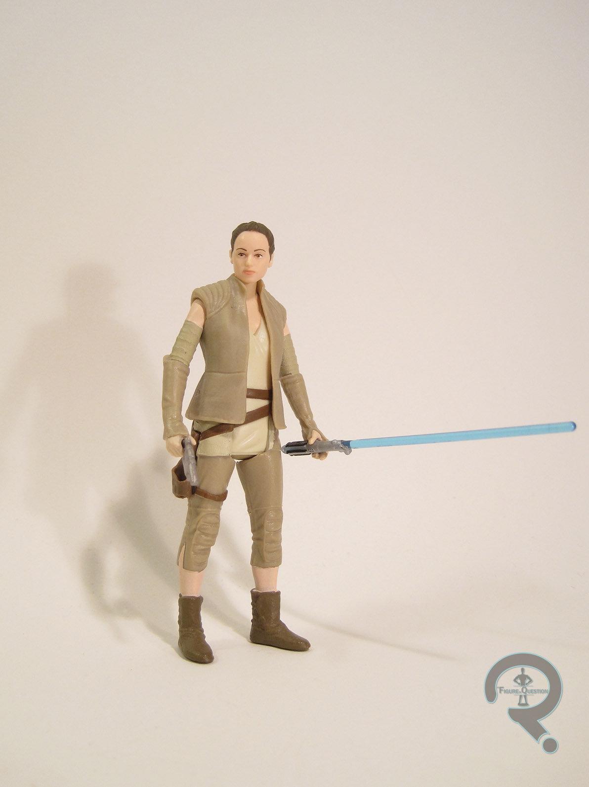 Rey was released as part of the second “Forest” assortment of Hasbro’s Star Wars: The Force Awakens figures. She and the other two figures in the set technically hit in February, but as I noted in the intro, they didn’t arrive a lot of places until after the Rogue One stuff. Rey is presented here in her Resistance garb from the end of TFA. It’s only in the movie for like five minutes or so, but it’s there for the film’s final shots, and is a pretty sharp design in general, so it was begging for a figure. The figure stands about 3 1/2 inches tall and has the usual 5 points of articulation. Rey is head-to-toe a new sculpt; nothing re-used from her prior figures here. Across the board, this figure’s sculpt is a pretty substantial improvement over the Starkiller Base version. The proportions feel a bit more balanced, she doesn’t feel as frail, and the pose seems a bit more natural. The vest is an add-on piece, and it adds some depth to the figure. The head is probably the best Daisy Ridley likeness in the smaller scale (only the Titan Heroes figure is a challenger in terms of all the scales). It’s still not perfect, but it’s a lot closer, I think mostly because rather than upscale the strands of hair at the sides of her face so they wouldn’t break (and thus making them look like braids or something), they just left them off, which looks much more accurate at this size. Rey’s paint is generally pretty good, with one caveat on my figure. The basic scheme is nice, and matches alright with what we see on screen. There was some controversy about what the color of her vest should be, grey or tan. It seems Hasbro went with the color of the actual costume, and didn’t replicate the effect of the lighting from the film. It’s Han’s jacket all over again! The application is mostly pretty clean, but my figure’s missing most of the paint representing the bottom of the shirt at the top of her left leg. It’s really weird, because the app isn’t missing entirely; there’s a small sliver of it around the hip joint. Not sure how it ended up like that. Rey was packed with the blaster given to her by Han, Luke’s lightsaber, her staff, and a piece of the build-a-whatsit. The blaster’s definitely the coolest piece. The saber is neat too, though she never actually wields it ignited in this particular garb. The staff is frustrating because it’s worked into the build-a-thing, and so it’s got this big block right in the middle of it, which is really annoying. Sure, I’ve got several of them, but not everyone does.