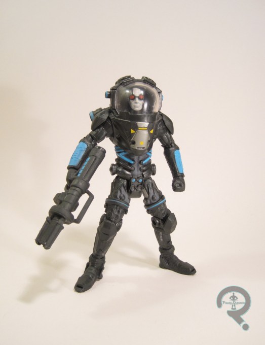 Mr Freeze was released in the very first series of DC Comics Multiverse figures from Mattel. He’s based on his appearance in Arkham City, the second Arkham game. It’s not a terrible Freeze design; it feels a little over complicated for my taste, but it fits alright with the rest of the Arkham game aesthetic, which I guess is really the main point. The figure stands a little over 4 inches tall and has 17 points of articulation. The articulation is like a lot of the other figures in this line, where the lower half has reasonable movement, but the upper half is mostly pretty restricted. Freeze’s shoulder pads in particular limit when can be done with his arms. Also, the lack of bicep movement is a real killer on Freeze, since it means he cant hold his freeze gun with both hands. Freeze’s sculpt was all-new to him, and it’s honestly one of the best sculpts this line had to offer. There are some slight oddities to the proportions, especially when it comes to the placement of the pelvis. The feet also are a bit clown shoe-y, which looks pretty goofy. The head and helmet is a pretty solid implementation; his head is connected to the waist joint, which subverts the usual issues with neck movement on Mr. Freeze figures, so that’s something Mattel actually did right. The paint on Freeze is decent enough. It’s pretty straight forward work, with solid color work, and no real accent work to speak of. The application is all pretty clean, and he has some brighter colors that help him stand out from the pack a bit. Mr. Freeze is packed with his freeze gun, which as I noted above, he can only hold one handed. It doesn’t look awful that way, so I guess it’s not the end of the world.