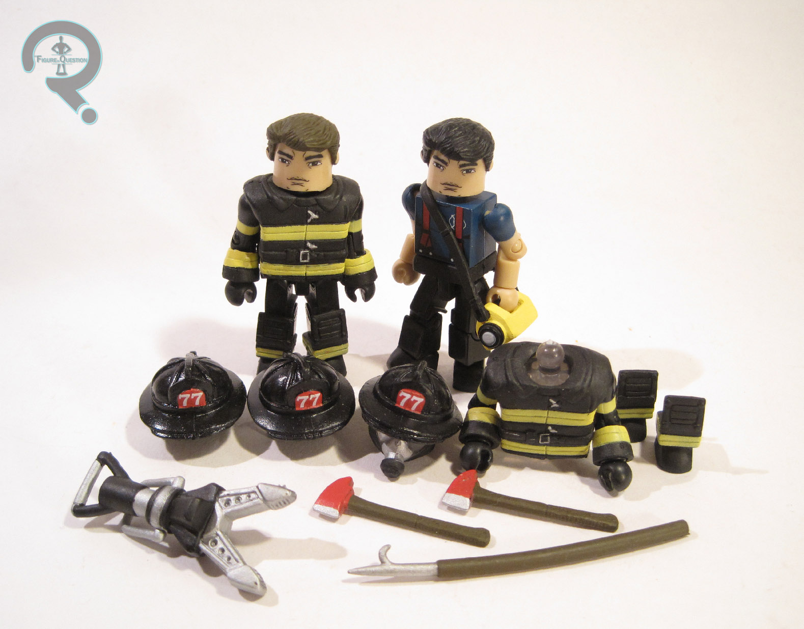 A large piece of Minimates success is how closely tied they are to all sorts of pop-culture.  There’s a definite novelty to having all of your favorite characters from numerous media sources in one cohesive style.  With that being said, one of the biggest holes in just about any toy collectors collection isn’t the main, licensed heroes; no, it’s actually the everyday joes who populate the background of all our favorite stories.  The cops, firefighters, soldiers, etc.  In 2010, DST offered Minimates fans the chance to add a few of those average joes to their collections, under the banner of M.A.X. Elite Heroes.  The line was sadly limited to just two series of two-packs, a box-set, and a handful of vehicles, but what was released was pretty darn awesome.  Today, I’ll be taking a look at one of the line’s sets of Fire Fighters!