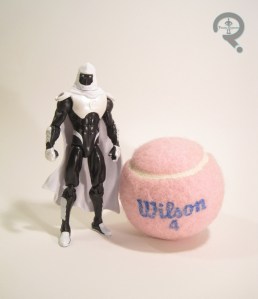 Moon Knight is one of the many Marvel heroes who began his career as an antagonist. First created as a foe for Werewolf By Night, Moon Knight proved popular enough with readers to earn his own title, and in the process has become arguably better known than the character he was created to fight. He was a fairly basic costumed vigilante to start with (he frequently found himself used as off-Batman); his only notable twist was that he had two secret identities, a wealthy playboy and a cab driver, neither of which was actually his original identity. Which, for those keeping track, is a whopping four identities. Eventually, it was decided that all these identities were actually due to Marc possessing a multiple personality disorder (which may or may not have been caused by the Egyptian God Khonshu’s influence on him). You see, Marc isn’t pretending to be Moon Knight, or Steven Grant, or Jake Lockley; he *is* those people. They’re all still very similar to Marc at their core, but each uniquely different in abilities, temperament, etc. He’s definitely a fun character when handled right. Above all, though? He looks cool, and that makes for a good toy.