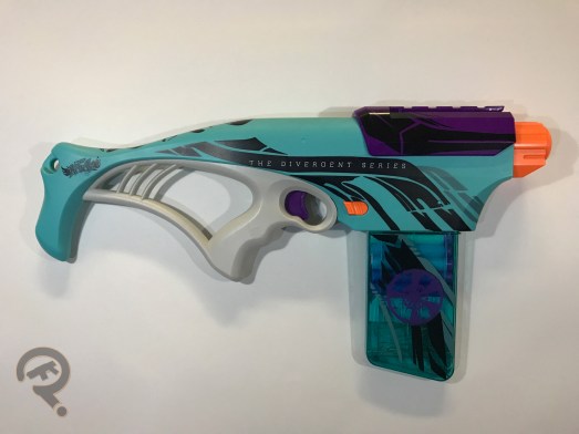Several of my friends and myself volunteer as tribute (like in Divergent) to help run a local convention every year. I purchased this blaster from Amazon so I could arm them to help enforce some of the rules. Unfortunately, the blaster didn’t arrive in time, so I was forced to bring a selection of other blasters in my arsenal. All in all it didn’t seem to affect our ability to lay down the law, Judge Dredd style, and either way, I got a new blaster out of it. While it’s not a standout blaster in any measurable sense, one of my favorite things about it is the aesthetics with the nice color scheme and the pictures of the mockingjays. And with that, I’m gonna end the review before actual Divergent fans start throwing things.
