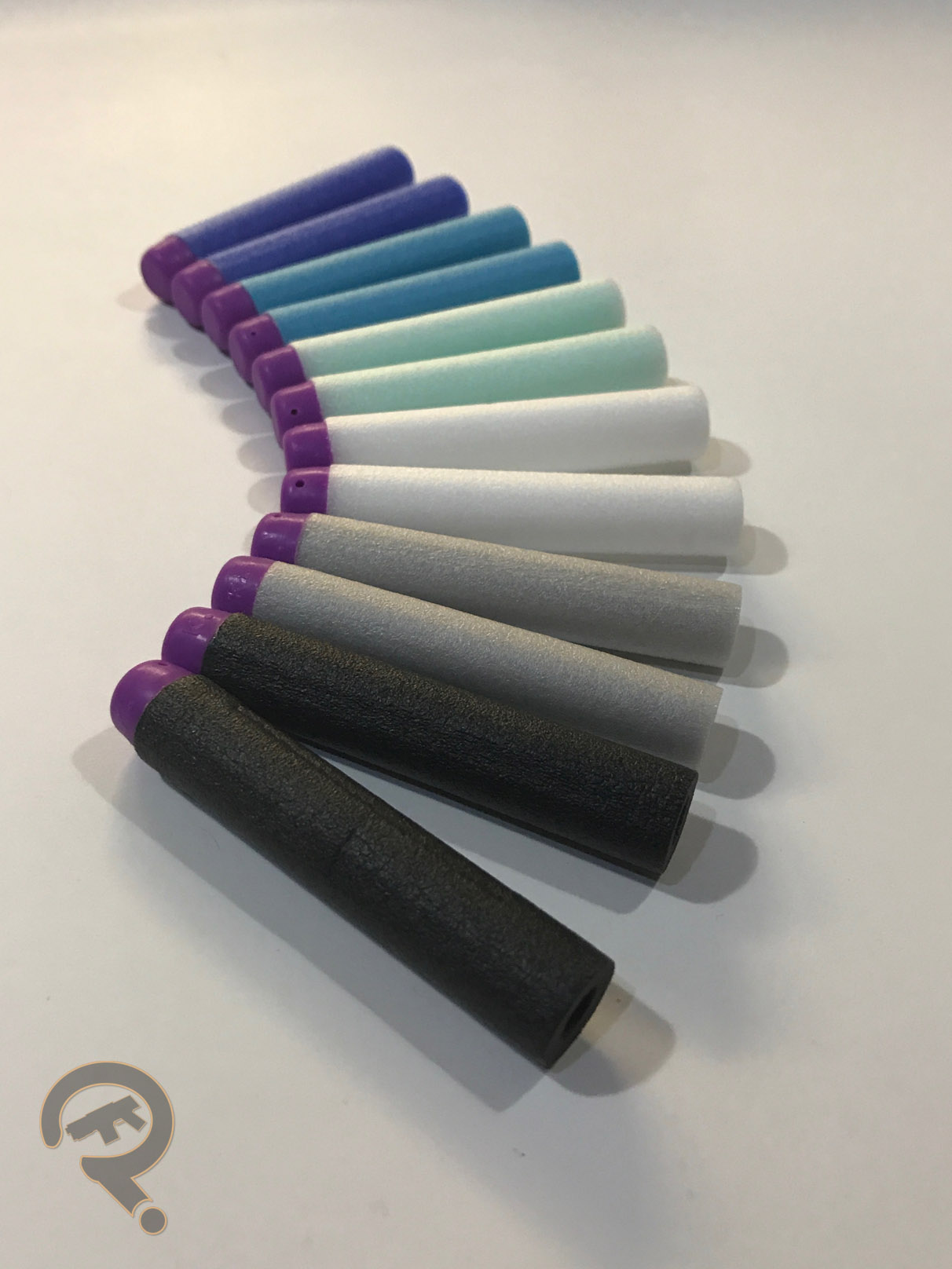 no practical use. However, despite its size, the overall shape of the blaster is very smooth with rounded edges and flowing lines, which do add a little bit to the ergonomics. I just wish the dang thing were bigger. The magazine holds 12 darts and is completely interchangeable with other Nerf magazines. The blaster doesn’t feature and sights but has a single attachment rail on the slide. In addition to being typically smaller, most Rebelle blasters perform just slightly worse than core N-Strike Elite and this is also the case here. It’s not the kind of difference that will make or break the blaster for most people, but side by side, it is noticeable, making it more suited for indoor play. This is doubly true if you are like me and have to keep all the original darts with the gun since it comes with its own custom assortment of colors. The blaster comes packed with the magazine and 12 “collectible” darts.