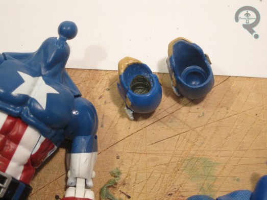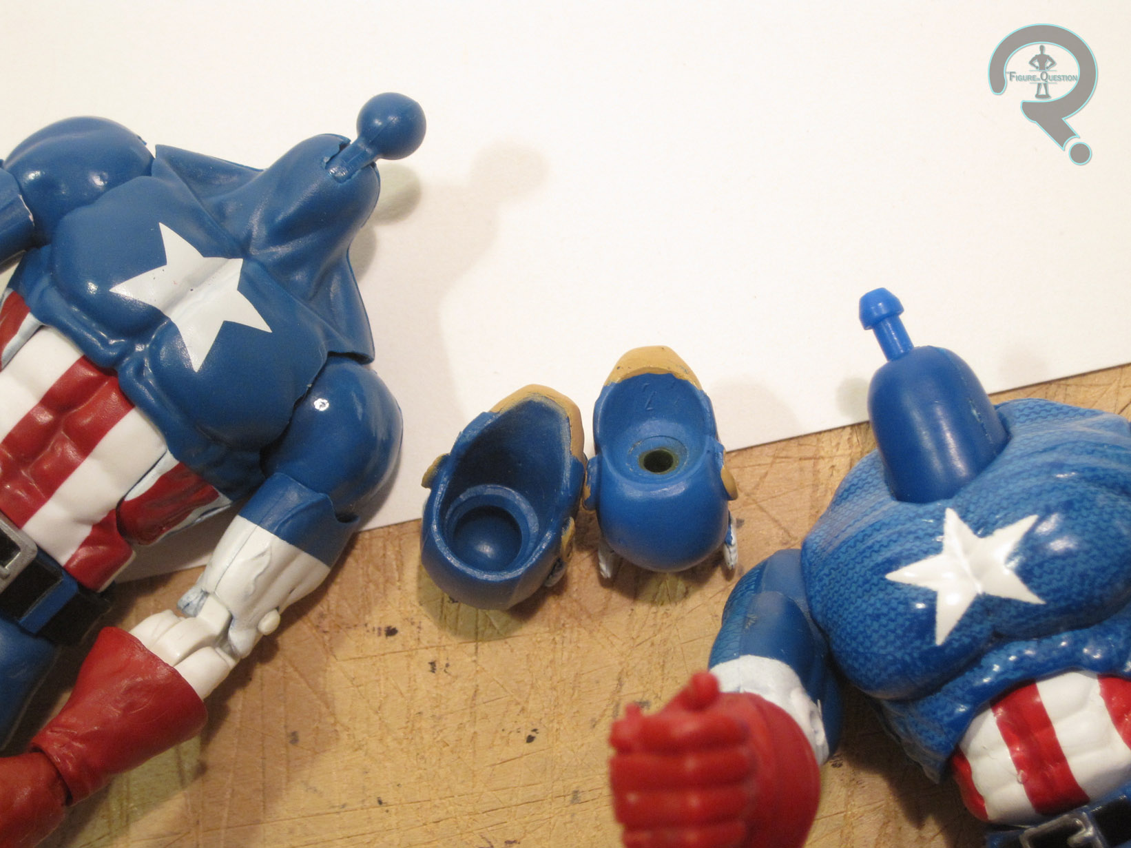 Perhaps the most difficult part of this whole project was just getting the TB Cap’s head off the body. Toy Biz heads weren’t really designed for easy removal like their Hasbro brethren, so you’re pretty much going to have to use the boil-and-pop method, and even then, it took me a few rounds to finally get it popped off the joint.