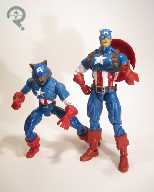 Throw in the shoulder harness from the Target 3-pack Cap to replace the wonky straps from the original figure, and I’m pretty happy with this figure. The head/body paint matches up surprisingly well (any differences are virtually invisible to the naked eye). The smaller head is scaled much better with the body, and it even makes the body look a little less chunky (I think the chunkiness I was seeing was actually an optical illusion). And, best of all, he cost me less than the retail of your average Legends release to put together. Now I have a Legends Captain America I can be proud of! Added bonus: with the left over parts I can put together a pretty sweet Cap Wolf!