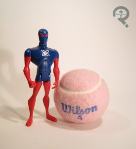 Micron was released in 2012 as part of Mattel’s Justice League Unlimited line.  He was originally packed alongside his teammate Aquagirl and the future version of Static Shock.  Both he and Aquagirl never actually showed up in Justice League Unlimited, but at this point, the line had more of an anthology thing going on.  The figure stands about 4 1/4 inches tall and has 5 inches tall.  He was built using the small male body, with a new head.  While the base body was decent enough for Micron in terms of build, he definitely seems a little small.  Just one of the sacrifices of doing a line based on this sort of model, I suppose.  Also, as a later in the line figure, he’s got the really weak ankles that plagued a lot of these guys, meaning he falls over at the drop of a hat.  It gets rather annoying.  The head is a pretty nice recreation of Micron’s look from “The Call,” though it does seem a touch too big for the body.  Still, not terrible.  The rest of the work is all in the paint, which is pretty decent overall.  The application is clean, and work on his logo is certainly sharp.  The red’s a good shade, but the blue seems a little light.  It’s hard to say, because in the show, the blue sections of his costume were actually black with blue highlights, so how that’s supposed to translate into an actual figure is anyone’s guess.  Micron included no accessories, not even a little mini Micron, which seems like a real missed opportunity.