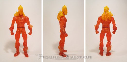 The Human Torch is the newest Walgreens-exclusive Marvel Legends figure. He started hitting most Walgreens’ shelves in the last month (though people have reported finding him for a few months now). Johnny is a character that’s proved to be somewhat difficult to translate to plastic over the years. The most successful figures have tended to be the ones that went for some sort of half-flamed-on variation. This figure doesn’t do that, and instead takes a stab at the every so tricky fully flamed-on variation. The figure stands about 6 1/4 inches tall and he has 32 points of articulation. He’s built on the Bucky Cap body, and, if I’m honest, I’m not 100% behind this choice. Johnny’s typically be depicted as more on the slight side, so I was sort of expecting he’d be on the Pizza Spidey base. At the very least, I was hoping that he’d use the Bucky Cap base with the less muscular Dr. Strange torso. No such luck. Admittedly, it’s not the worst choice of body. It hardly ruins to figure. He gets a new head, forearms, hands, shins, and feet, all sporting flame effects sculpted right onto them. They’re obviously of a more stylized nature, but I think they look pretty decent. They certainly look better than prior attempts. The head is actually a fairly well rendered piece. He’s got a sly grin, which is perfect for Johnny, and is a much better fit than the angry, teeth-gritted expressions we’ve gotten on prior figures. They’ve foregone his hair, opting for a “bald” Johnny with unrelated flames at the top of his head, rather than some bizarre flame-hair-combo thing. The paint on Johnny is pretty decent. He’s molded all in translucent plastic, which adds quite a bit of life to the figure. There’s some more opaque work on the actual flames, as well as some variation in the coloring, indicating his uniform beneath it all. He’s clearly wearing his classic costume, which means he matches his sister. I like that the head is a lighter yellow shade, making it clear that it’s his exposed flesh, and not the same color as his uniform. Johnny is packed with two flame effect pieces (re-used from Iron Fist), as well as two standard fists, molded to match the figure. Not quire as impressive as the whole extra figure included with his sister, but not terrible.