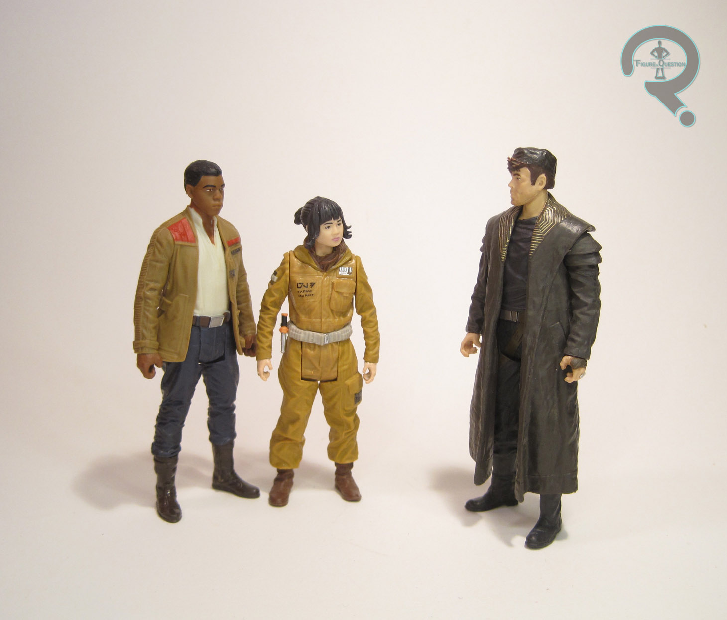DJ is part of the second Orange assortment of Hasbro’s Star Wars: The Last Jedi line. He’s the only unique character this time around, but I feel like we’ll at least be seeing a Holdo at some point down the line. The figure stands 4 inches tall and he has 5 points of articulation. I was a little bummed that his hands don’t move at the wrists, especially since they’re already separate pieces, and Luke got those joints. I like consistency. DJ is sporting an all-new sculpt, which is a pretty solid piece of work. The likeness on the head is perhaps not a spot-on likeness of Del Toro, but it’s close enough that you can tell who it’s supposed to be. I think it’s the nose that throws it off; it’s a bit too up-turned, like one of the Whos from the live-action Grinch movie. The body sculpt has nicely balance proportions, and there’s some really amazing texturing on his jacket. If I had one complaint, it’d be the collar. In the movie, DJ tended to have it somewhat popped and disheveled, but here it’s flat against the rest of the jacket. He does have it like that occasionally in the film, but it’s not what I’d pick as my ideal look for him. The paint on DJ is decent enough. The colors are rather dull, but that’s accurate, and the application’s all pretty clean where it needs to be. For the first time…well, pretty much ever, actually, Hasbro’s done a halfway decent job of giving DJ that appropriately scruffy facial hair. It certainly looks better than any of their attempts at Poe’s, that’s for sure. DJ is packed with a blaster pistol, which is rather involved and probably one of my favorite blasters from this line. He’s also Force Link compatible. The line’s I got were “I can get you out of here if the price is right,” “I’m a thief by trade,” and “Let’s get this over with,” all in a voice that is undoubtedly not Benicio Del Toro at all.