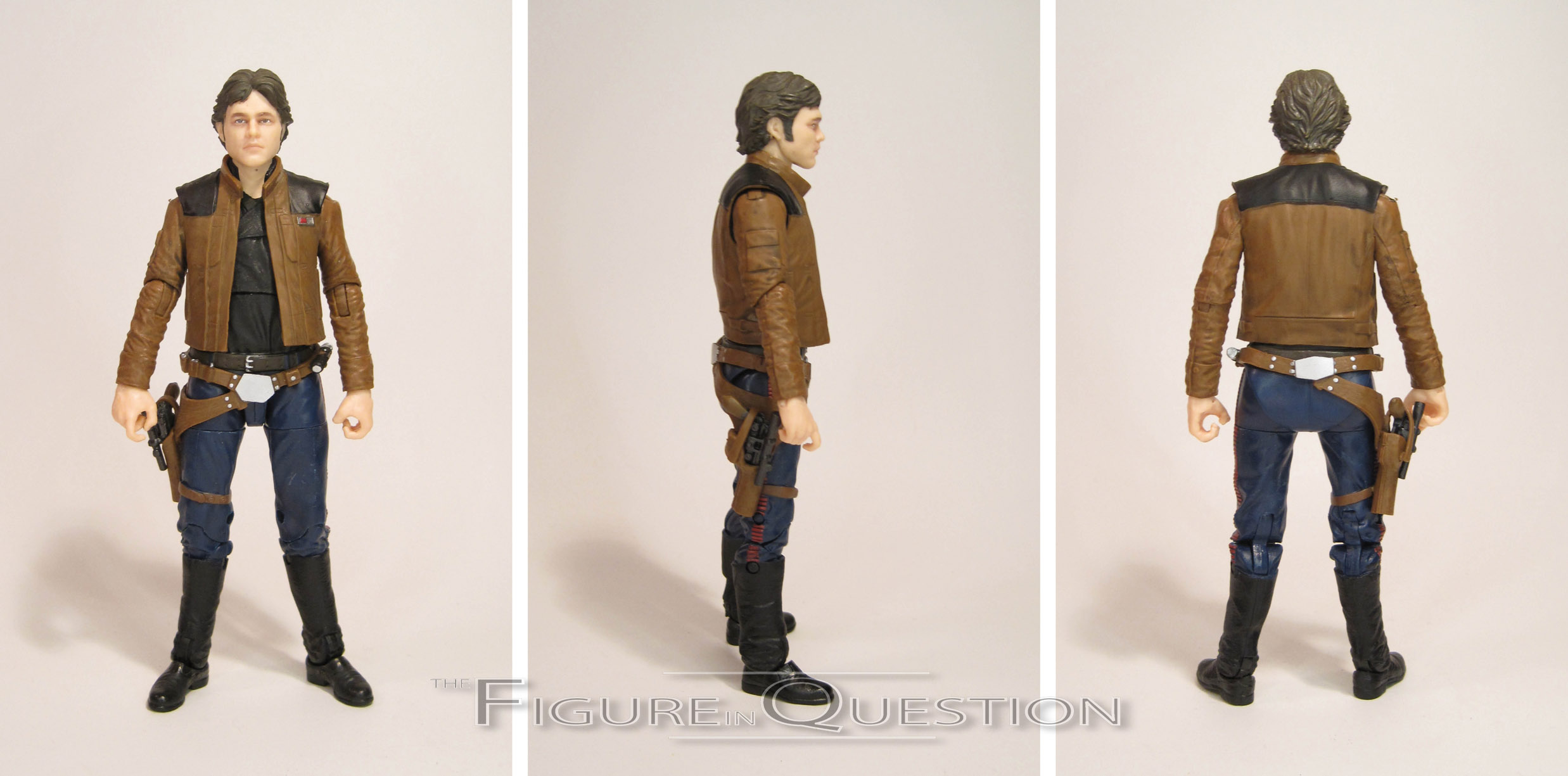 Han is part of the latest assortment of Star Wars: The Black Series figures, which officially started hitting stores last Friday. He’s numbered 62 and is one of four figures in the first assortment to be specifically from Solo. He’s the fourth Han in the line, and, of course, the first not to be based on Harrison Ford. The figure stands 6 inches tall and he has 26 points of articulation. Han’s articulation is some of the best we’ve seen in the line. Range of motion on the elbows is almost equivalent to a double-joint, and the posabilty of the ball jointed neck is downright astounding. Han gets an all-new sculpt, which at this point in the line is hardly a surprise. It’s definitely up to the line’s increasing standard of quality when it comes to sculpts. The details are all very crisp, and he looks quite a bit like Alden Ehrenreich. If I have one complaint about the sculpt, it’s that I’m not a huge fan of the non-dominant hands on these figures having this weird empty grip they’ve been going with as of late. Of course, that’s exceedingly minor. A good sculpt can still be brought down by bad paint, but I’m happy to say that isn’t the case on this figure. The Black Series figures have begun implementing the same face-printing technique that Marvel Legends has begun using on their MCU figures, an Han is my first figure from this line to feature it. I’m very happy with the end result; he looks very lifelike, and definitely avoids that sort of dead-ness that some of the earlier Black Series figures possessed. Moving past the face, they’ve even put some slight accenting on his hair (something that is far too often overlooked) and his jacket, thereby preventing him from being quite as bland as some of the figures in this line have ended up. Han’s only accessory is his DL-44 blaster pistol; it’s still a good piece, and this isn’t a huge change of pace from prior figures, so I can’t really complain.