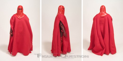 Last up, we’ve got the most recent, and most unique of the designs in the set, the Praetorian Guard. I’ve already looked at one Black Series Praetorian Guard. This one’s got a new hat different helmet. Hasbro released all three styles of helmet in both scales; this one is the “hat-wearing” helmet that we also saw in the two-pack with Rey. Probably my least favorite of the three designs, but a solid one nevertheless. Anyway, this figure stands 6 1/4 inches tall and he has 29 points of articulation. He’s largely the same figure as the other Praetorian Guard. The big change is obviously the helmet, which it just as nicely detailed here as it was on the smaller figure. The other, more subtle change is the skirt, which is now a cloth piece instead of sculpted. It matches better with the rest of this set, but it means he’s not consistent with the other two Praetorian Guards, which is rather frustrating. Also, while it improves posability, I don’t find it looks quite as good. The Praetorian Guard is packed with his axes that snap together into a bladed staff, just like the smaller figure.