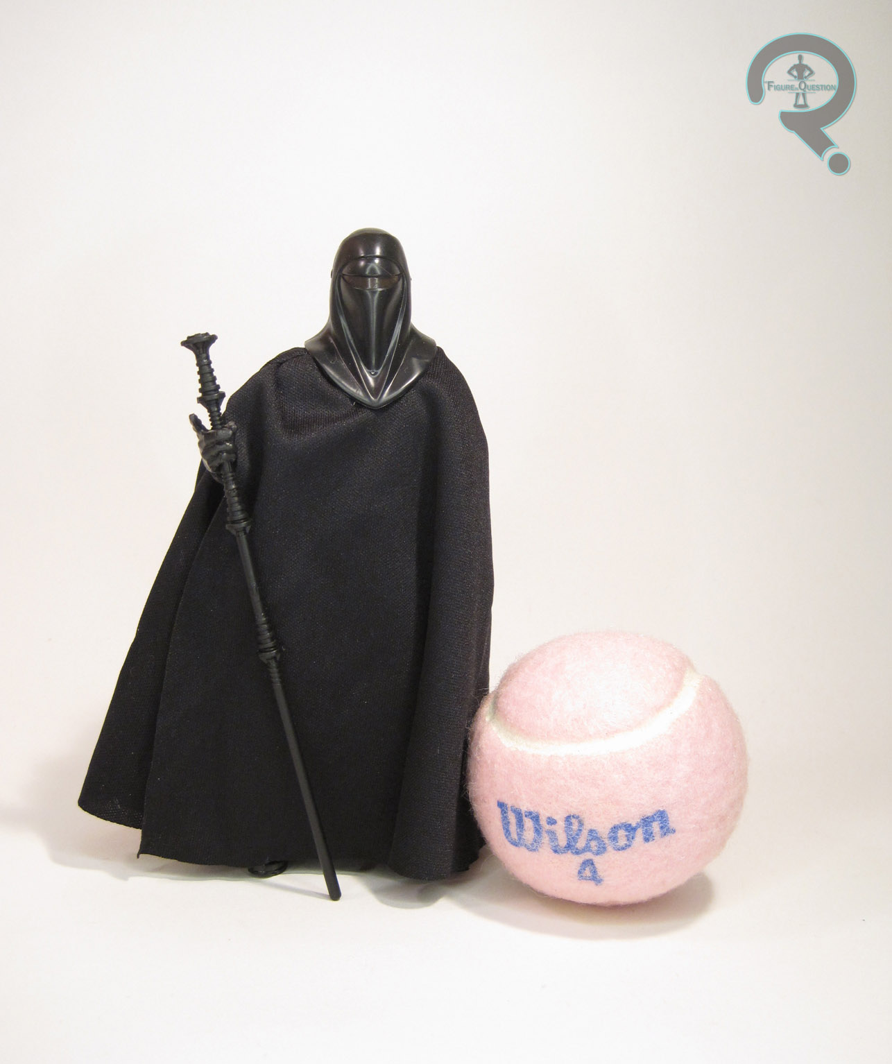 The Royal Guard has taken the black! Okay, I’m not actually familiar with this one. My extensive research (read: I googled “Emperor’s Shadow Guard” and skimmed the link) tells me the concept comes from The Force Unleashed. That makes this another video game-based figure, which is pretty cool, I guess. Structurally, the figure’s 100% the same as the Royal Guard, which seems sensible, since they’re essentially the same design. The main difference is that this one’s been done up in black, so he looks super edgy. And also super slim, right? Has he lost weight? No, it’s just the black. The Shadow Guard includes a new staff, with a removable laser blade, as well as the blaster pistol from the other two.