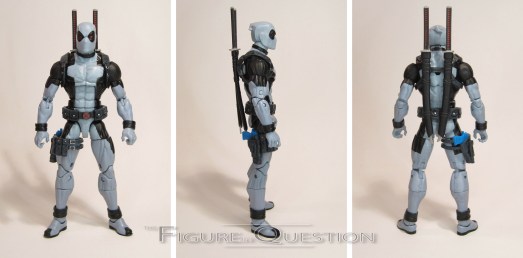 X-Force Deadpool is numerically the first figure in the Sasquatch Series of Marvel Legends. A quite similar figure was released earlier, as an exclusive to HasCon 2017. While the main figures are similar, they are not identical, and the accessory complements are completely different. Both figures are based on Deadpool’s more monochromatic look from the pages of Uncanny X-Force, which is coincidentally quite similar to how Wade looks after taking a fair bit of damage in the final act of Deadpool 2. The figure stands 6 1/4 inches tall and has 32 points of articulation. On the outside, the figure’s doesn’t seem all that different from the one released two years ago in the Juggernaut Series, but he’s actually more different than you might think. They share the same base body (the Bucky Cap), and the same head. They also share the same shoulder harness and thigh holster. Beyond that, he gets a new belt, wristbands, and ankle bands. They succeed in making the figure moderately different, and by extension, more accurate to the original source material than a simple recolor would have been. Even the paint masking is a bit different, and not just a simple palette swap. The shaping of the black sections of his costume are actually the inverses of the last figure’s, which is another point in the accuracy column. Sadly, Deadpool’s accessories have been stepped way back from both the HasCon offering of this costume and the prior standard release. Still, he does get the swords, the rail gun, and the pistol (both painted in a fun blue color that makes them look vaguely Nerf-ish), and he also comes with the head of Sasquatch.
