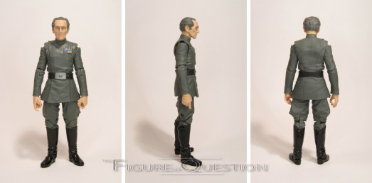 Grand Moff Tarkin is figure #63 in the Star Wars: The Black Series line. He hit alongside the Solo product back in April, and has proved to be the most difficult to find of the set. The figure stands 6 inches tall and he has 24 points of articulation. As an Imperial officer, it’s not a huge surprise to find that Tarkin makes use of some of Krenic’s parts, namely the arms and legs. He gets a unique torso and skirt piece, to denote his slightly differing rank and his lack of a sidearm. The torso does a good job of capturing Peter Cushing’s more narrow-shouldered build. He’s also got a new head, of course, which is definitely one of Hasbro’s best offerings from this line. The likeness of Cushing is spot-on, right down to the slight little sneer he had in all of Tarkin’s scenes. There are tons of subtle little details, which really help to make this sculpt incredibly lifelike, even more so than a lot of others in this line. Tarkin makes use of the new face printing technique, just like the rest of his