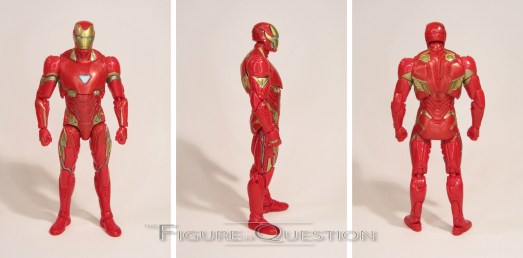 Iron Man is the final figure in the Thanos Series of Marvel Legends, the first Infinity War-themed assortment of the year. He’s also the last of the four specifically movie-based figures in the line-up. And, most importantly, he’s the only figure in the set that isn’t needed to built the Thanos figure, which is why everyone was skipping him. Tony’s wearing his Mark 50 armor from the film, which is also his *only* armor for the film, so I guess it’s a sensible choice, now isn’t it? The figure stands 6 1/2 inches tall and he has 29 points of articulation. His construction is very similar to the Mark 46 figure from the Giant Man series, but there are no actual pieces shared between the two. This guy is an all-new sculpt, which does an okay job of capturing the Bleeding Edge armor’s design from the movie. It’s not a spot-on recreation; it’s definitely not quite as sleek as the design in the movie. There are far more pronounced ridges and connecting points, bringing its overall design closer to the Mark 46. This is likely a symptom of Hasbro working from earlier designs to get the figure out before the movie. Ultimately, it’s close enough that you know which armor it’s supposed to be, and it’s nowhere near as off as either Captain America or Cull Obsidian. Fortunately, it’s got some pretty great proportions, and the articulation is also worked in pretty well. Iron Man’s paintwork is decent and certainly eye-catching, but like the sculpt, it’s not 100% accurate. The main culprit is the red. It should really be a deeper, more metallic color than it is. That being said, the color they’ve used is still nice to look at, so I’m not going to complain too much. What I will complain about? Just the figure’s single greatest failing: his accessories. In the movie, Tony’s using this armor to create all sorts of nano-tech-based weaponry and tools. What does this figure get? An extra set of hands and the same blast effects pieces they’ve been using since the 46. No extra attachments, no unmasked head, no build-a-figure piece. The extra hands don’t even have hinges on the wrists. That’s really weak.