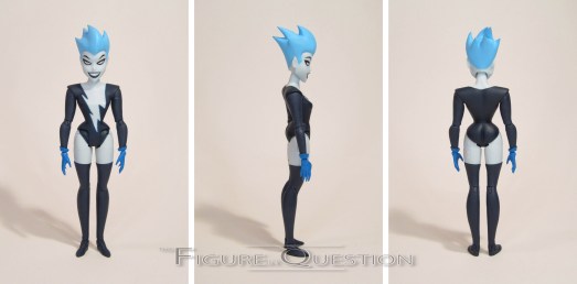After the successful creation and reception of Harley Quinn and Renee Montoya in Batman: The Animated Series, the creators tried their luck again with Livewire (though Livewire *actually* appeared in the tie-in comic before the show). While she didn’t quite take off the way those two did, she did still pick up a decent fanbase of her own. She never actually got a figure during S:TAS’s run, but she’s made out alright since the show’s end. The figure stands 5 1/2 inches tall and she has 23 points of articulation. Like Kara, her sculpt is quite a good match for her show appearance. In fact, I even have trouble finding the minor nitpicks like I did with Supergirl. The proportions are more balanced, and the lines are all very sharp and clean. Her paintwork is appropriately monochromatic, and the blues interact well with each other. There’s a little bit of fuzzy work on the edges, but it’s mostly confined to the “emblem” on her torso, where it’s somewhat acceptable, with her being an energy being and all. She also is only packed with a display stand. The lack of extra hands is slightly less frustrating for her, since she doesn’t need them as much, but I’m still not 100% okay with it.