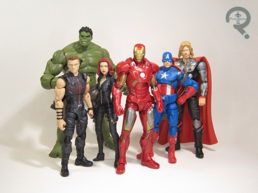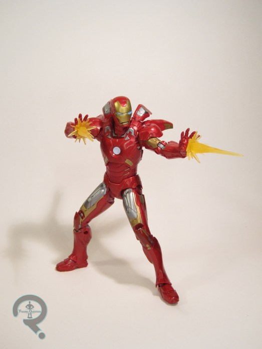 The Mark VII Iron Man is entry 3 in Hasbro’s Marvel Studios: The First Ten Years sub-line of Marvel Legends. He is the final of the three single-packed offerings from the line, following the previously reviewed Red Skull and Ronan the Accuser. This is, of course, Tony’s Mark VII armor, which he sports during the proper assemblage of the Avengers during the film’s big climactic battle. The figure stands 6 1/2 inches tall and has 37 points of articulation. Not only does this figure have the most articulation of any of the movie Iron Men, it’s also implemented in the most workable fashion here, meaning that the Mark VII is hands down the most posable MCU incarnation of Iron Man in the Legends line-up. Though it takes a little bit of cheating, you can also get his signature three-point landing out of this figure, which ended up being one of its selling points for me. What’s more, you can even move all of the flaps on his back, and his head can almost look straight up. We saw a lot of improvements in this direction fro both the Mark 46 and Mark 50 releases, but this guy really seems to take everything they’ve learned and even further build on that. Obviously, with all of this improved articulation, you kind of need an all-new sculpt, and this one’s a very good one. Thanks to a much-delayed release, Hasbro was able to actually make the figure as faithful to the film as possible, and they’ve generally succeeded. There are still a few little details here and there, but he’s very, very close. The biggest plus for me is that, unlike the IM2/IM3 armors, this one is actually properly scaled with the rest of the MCU Legends, and can conceivably be an actual guy in a suit of armor. The paint work for the Mark VII is solid, and again, one of the strongest entries we’ve seen for an MCU Tony. The metallic red plastic works very well, being neither too bright or too dark, and the rest of the application is pretty clean. There’s a slight scuff on my figure’s right leg, but he’s otherwise pretty good. The Mark VII is packed with a second set of hands, this time in the repulser blast pose (which, sadly, continue the tend of not having the same articulation as the fists), as well as the now-standard blast-effect pieces, this time in a transparent yellow. I was a little saddened that there was no unmasked head this time, which is about the only major complaint I can lobby against this figure.