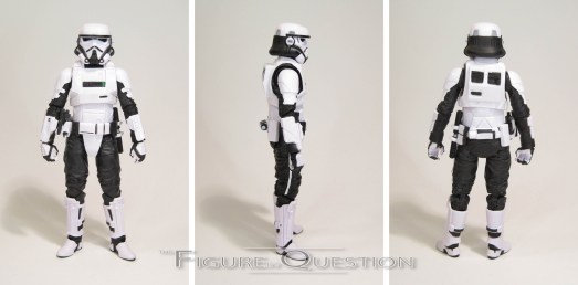 The Imperial Patrol Trooper is figure 72 in the Black Series line-up, placing him right after Val from yesterday. He is, unsurprisingly, from the same assortment, and started showing up at retail in the last month or so. The figure stands 6 1/4 inches tall and he has 29 points of articulation. The articulation on this guy is some of the best we’ve seen in the line, and I’d certainly say it’s the best we’ve seen on any of the troopers. What’s most impressive about the articulation and its mobility is just how little compromising they’ve done with the integrity of the sculpt. At first glance, I was really expecting this figure’s posabilty to be another First Order Trooper situation, where he looked quite nice, but struggled with anything but basic poses. I was pleasantly surprised to say the least. Like his basic line counterpart, the Patrol Trooper’s sculpt is a very strong offering. It’s clean, the details are sharply defined, and it matches up very well with the movie design. The figure really emphasizes how slick this design really looks, just as a whole. If there’s one slight down tick on this figure, it’s the paintwork. There are some fuzzy edges on the transitions from white to black, which were giving me some flashbacks to the First Order Trooper. That being said, those issues are rather minor in the grand scheme of the figure, and it’s hardly the worst we’ve seen in this line. Just not quite as good as recent offerings. There are still plenty of touches that really help the figure, such as the very dark, metallic green for the visor. Like his smaller counterpart, the Patrol Trooper includes a small Biker Scout-esque blaster pistol, as well as a removable police baton on his belt. Both pieces can be easily held by the figure or safely stowed on his belt, by which I was very impressed.