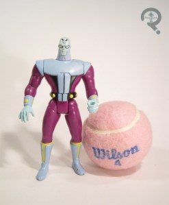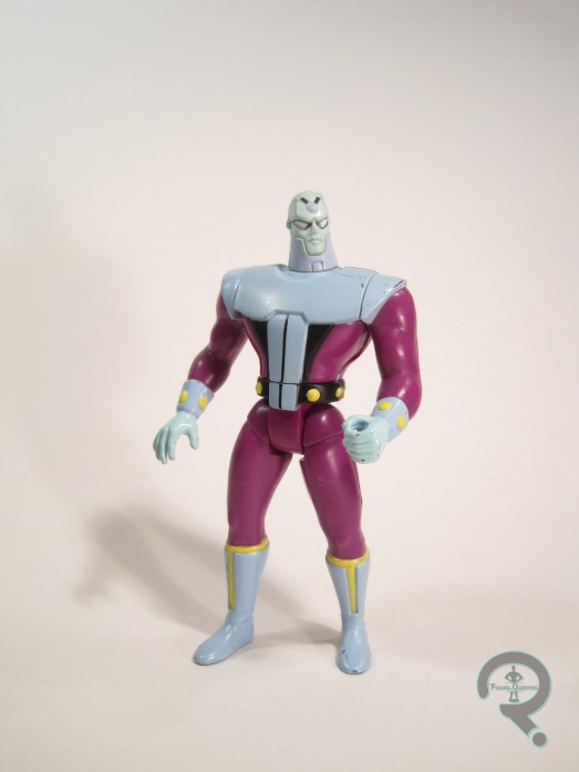 Brainiac was initially released in the first series of Superman: The Animated Series figures under the name of “Evil Alien Brainiac.” You know, in case there was some confusion about his motivation or his place of origin. Kind of sad we didn’t get this naming scheme across the whole assortment. Why not “Good Alien Superman” or “Evil Human Lex Luthor”? Would those have not appealed to the mass consumer as well? Regardless, the figure in this review is not actually the Series 1 release, but is instead from the “Battle for Metropolis” four pack released at the tail end of the line. The two figures are essentially the same, but there were some color differences, which I’ll touch on in the paint section. The figure stands 5 inches tall and he has 6 points of articulation, which was standard for the line. After being reasonably faithful to the show designs for BTAS, the STAS line was a bit more stylistically divergent from the show. Brainiac was one of the more faithful sculpts from the line, though he lacks the somewhat streamlined proportions of the show design. Beyond that, though, it’s not a bad offering. The details are pretty well defined, the costume details are all where they’re supposed to, and the pre-posing isn’t as crazy as some of the other figures in the line. The paintwork on Brainiac does the sculpt well and keeps him fairly faithful to the show. This second release was even closer, having swapped out the shade of purple for a slightly warmer tone like we saw in the show. Both versions of Brainiac were packed with the same missile-launching Space Sled. My figure is without said accessory, though.