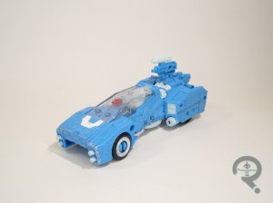 Chromia’s smaller, and curvier design means that there are less opportunities afforded for easy places to hide vehicle elements. I suppose it’s possible they could have streamlined her a little further, but I don’t think the end result looks *too* bad. Really, if it weren’t for that huge honking backpack, she wouldn’t look all that bad. In fact, I’m quite impressed by the movement on some of her joints, particularly the neck joint, which allows for quite a bit of expressiveness with the figure. Chromia’s alt-mode is sort of a Cybertronian sports car/minivan thing. The transformation is overall pretty simple, though I did have a few slight hangups with mine that made her more difficult to shift back and forth. I don’t foresee myself swapping her back and forth all that much, due to these difficulties. Chromia is packed with an RT-5 Anti-thermo Blaster, SR Hushfuze, and 2 EMP-Grenades, which pretty much translates to a blaster and a whole bunch of attachments that can configure into all sorts of differently shaped guns. Quite frankly, this is probably my favorite part of this whole figure.