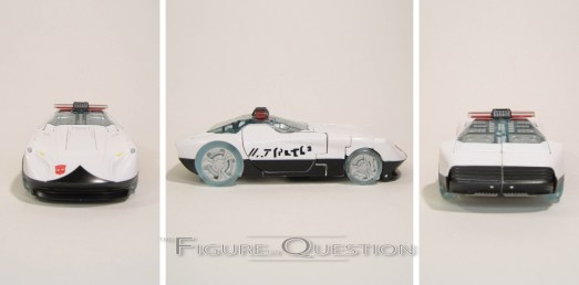 When I say “horrific,” you say “death!” Ah, yes, what better way to start out a Prowl review than by putting all of the potential Prowl fans reading up in arms immediately? You know, by reminding them of the horrifying, fire out of the eye-sockets, death that befalls him in Transformers: The Movie‘s opening minutes? Man, didn’t that suck? It’s okay, I think people may have gotten over it. They’ve had 33 years. Well, I mean, I haven’t. I’ve had a few months, because that’s when I finally saw the movie. Of course, since the movie is also my only real exposure to Prowl in media, I guess it’s a bit of a wash. Whatever the case, I’m reviewing a Prowl figure today. So there.