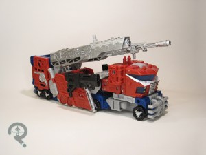 The next mode is the basic truck mode. Unsurprisingly, it’s pretty similar to Magnus, but with the expected changes to the front of the cab. There’s some slight partsforming that goes on for this mode, with the forearm pieces from the armored up mode becoming the front grill of the truck, which I actually think works out a little better than the permanently attached piece from Magnus. This base mode is the starting point for his final mode, which adds back in his armor from his super mode, to make a more involved truck. There’s even more partsforming going on here, moreso than we saw on Magnus, and by and large I found this transformation a little more complicated, though it certainly picked up as I moved through the process. Like Magnus, Prime is packed with two “W-30 Magnetic Inducer Launchers” (the pistols), and also gets a “JF-15 Gravity Force Laser” (the rifle).