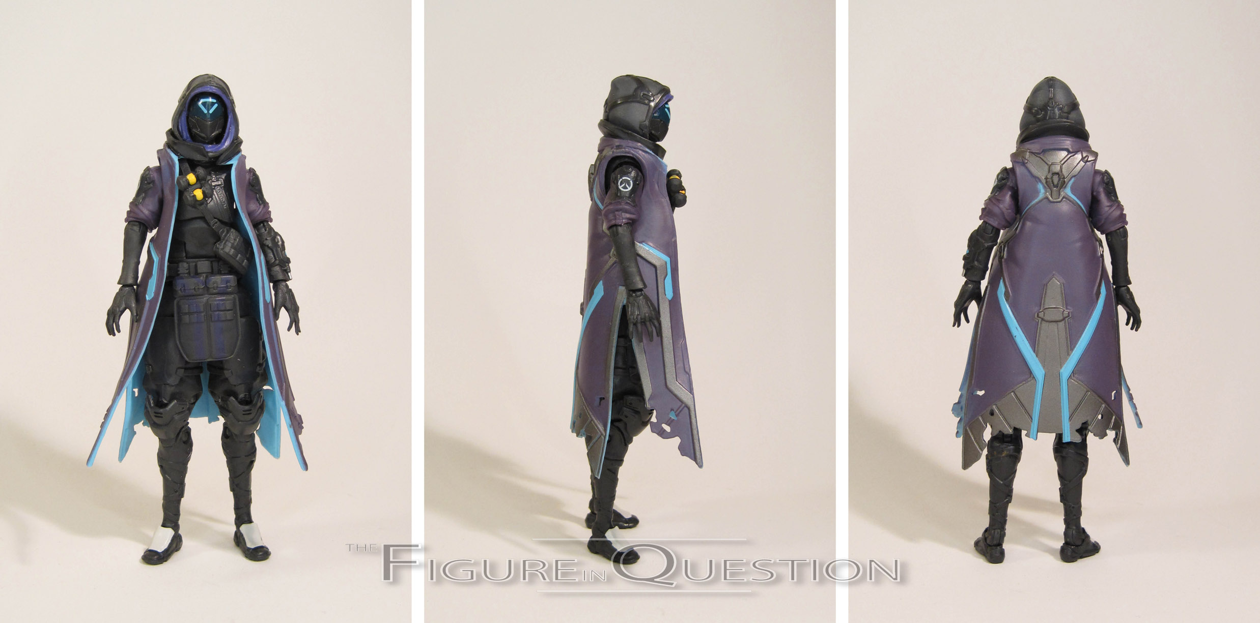 So, Ana.  She’s…a member of Overwatch?  And a sniper, I guess?  Apparently she’s one of the older members of the team, and linked pretty closely with Soldier: 76 and Reaper.  This figure is based not on her standard appearance, but rather on her time as the vigilante Shrike, sometime in the game’s past.  I think.  I’m not sure, because, you know, not really familiar with the source material.  The main difference with this particular design is that she’s got a full faceplate thing, which is actually a pretty solid design element, which I can certainly get behind.  The figure stands a little under 6 inches tall and she has 27 points of articulation.  Ana’s an all-new sculpt, and she goes for the base figure with a bunch of overlays set-up.  The hood and jacket in particular are separate pieces, and are free-floating.  For the hood, it’s not a big deal, but for the jacket, it means it pops up and down a lot and just generally looks a little goofy.  It contributes to the overall rather flimsy feel to this figure.  There are also a few issues with how the articulation is worked into the sculpt.  The legs are generally pretty well-handled, but the arms really seem to suffer from some design choices.  The elbows don’t have a ton of range, and don’t even quite make a 90 degree bend, which definitely limits the posing options on the figure.  On the plus side, Ana’s paintwork isn’t bad.  It’s mostly pretty basic stuff, but the application is clean, and the colors are nice and contrasting.  Ana is packed with two sets of hands (relaxed and gripping), a rifle, a pistol, and an blast effect piece.
