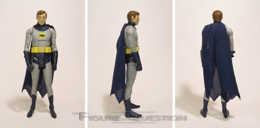 The “To The Batcave” set was one of the last two items to come out of Mattel’s Batman ’66 line, released (initially, at least) as a Toys R Us-exclusive item, alongside the Triumphant Trio three-pack, in the late summer of 2015.  While billed as a playset, what it more works out to is a figure with a larger than average selection of accessories, because that’s just how Mattel do, I suppose.  The figure included here is a standard Batman, who would receive five separate releases by the time the line was done.  He stands right at 6 inches tall (quite under-scaling him when compared to pretty much any other 1:12 lines, since they tend to punch up a bit on size) and he has 23 points of articulation. Despite how many times it would end up re-issued, the Batman sculpt was probably the weakest of the line’s selection of very weak sculpts.  Firstly, let’s discuss the articulation.  DC Universe Classics was never on par with Legends, but it at least offered a workable selection of joints; not so with this line.  In addition to the general lack of joints, the joints included aren’t particularly useful.  The ab-crunch, the knees, and the elbows in particular have extremely reduced range, making even rather basic poses very difficult.  The quality of the sculpt proper’s not great either. While Adam West may not have been a body builder or anything during his time under the cowl, the extraordinarily skinny build on this figure goes way too far, building a figure that really doesn’t look like a real person at all.  Coupled with the already small scale on the figures, it makes Batman downright silly looking when compared to his contemporaries from lines running at the same time.  Additionally, despite being based on a real person, and not a comic book creation, this figure’s level of detailing marked a major step down when compared to prior Mattel output, as the majority of the costume is devoid of any sculpted textures.  About the best that can be said of the sculpt is that the masked head doesn’t have a terrible likeness.  So, that’s the old figure that they threw into the box to take up space.  What about all the new stuff they added that was supposed to actually sell this thing?  Well, the box proudly proclaims that the set includes 15 accessories…which is true, albeit not quite as impressive as the box might lead you to believe.  To go on the figure proper, we get an unmasked Bruce Wayne head.  Kind of an interesting choice, since I don’t believe we actually ever saw Bruce unmasked in the costume on the show.  However, it’s got a decent likeness of West, and it actually looks a little better on the body than the standard head.  The largest piece is definitely the Batcomputer, which is a decent set piece, even if it is pretty simplistic.  At least it’s got its proper label, showcasing 60s Batman’s love of labels.  The piece is hollow, and the back pops off to reveal the “Secret Equipment Storage,” which is where you can stow all of the other parts when you aren’t using them.  The back that pops off is designed to look like the inside of stately Wayne manor, allowing for two different display options, and two different sets of accessories to go along with them.  On the cave side, we get three batarangs (all identical), four cans of Batman Spray Repellent (again all identical), the Batzooka, Bat megaphone, and Bat communicator.  The duplication of the batarangs and repellent is kind of odd, since obviously he can’t use them all at once, nor is there really anywhere to display the extras, making it really seem like Mattel included as many as they did to bump that accessory count up.  Additionally, there’s the ongoing issue with Batman generally just being unable to really hold any of the included extras. The Batzooka in particular is notable, as its size and weight mean that the figure will fall over if its held in any fashion other than at his side.  On the Wayne Manor side, we get the Shakespeare bust with the hidden button for cave access and the red Bat-phone.  The bust is definitely my favorite extra included here, because the sculpt’s really clean, and the hinge works quite nicely.  To complete the two different set-ups, there’s a card with a Batcave illustration on one side and Wayne manor on the other, as well as a stand to hold the card.