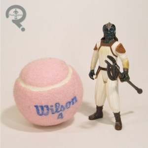 This is Klaatu, who is apparently a male Kadas’sa’Nikto, at least according to his Wookiepedia entry, which is pretty much my only source for info on this guy. He’s green, reptilian, and looks like he’s wearing his pajamas. That’s pretty much all I got. Oh, right, the figure! Yeah, so he’s 3 3/4 inches tall and has 6 points of articulation. All pretty standard there. His sculpt was unique to him and would remain so. Klaatu’s stance is the least pre-posed of this bunch, and honestly his actual sculpt is also the least detailed, which leads one to wonder if he may have originally been slated for some sort of a single release earlier on, before being moved here. Klaatu’s paintwork is decent enough, if not incredibly eye-catching. It’s got some weathering going on, so that’s pretty cool. Klaatu is armed with a pike, which he has a little bit of difficulty properly holding with his pose.