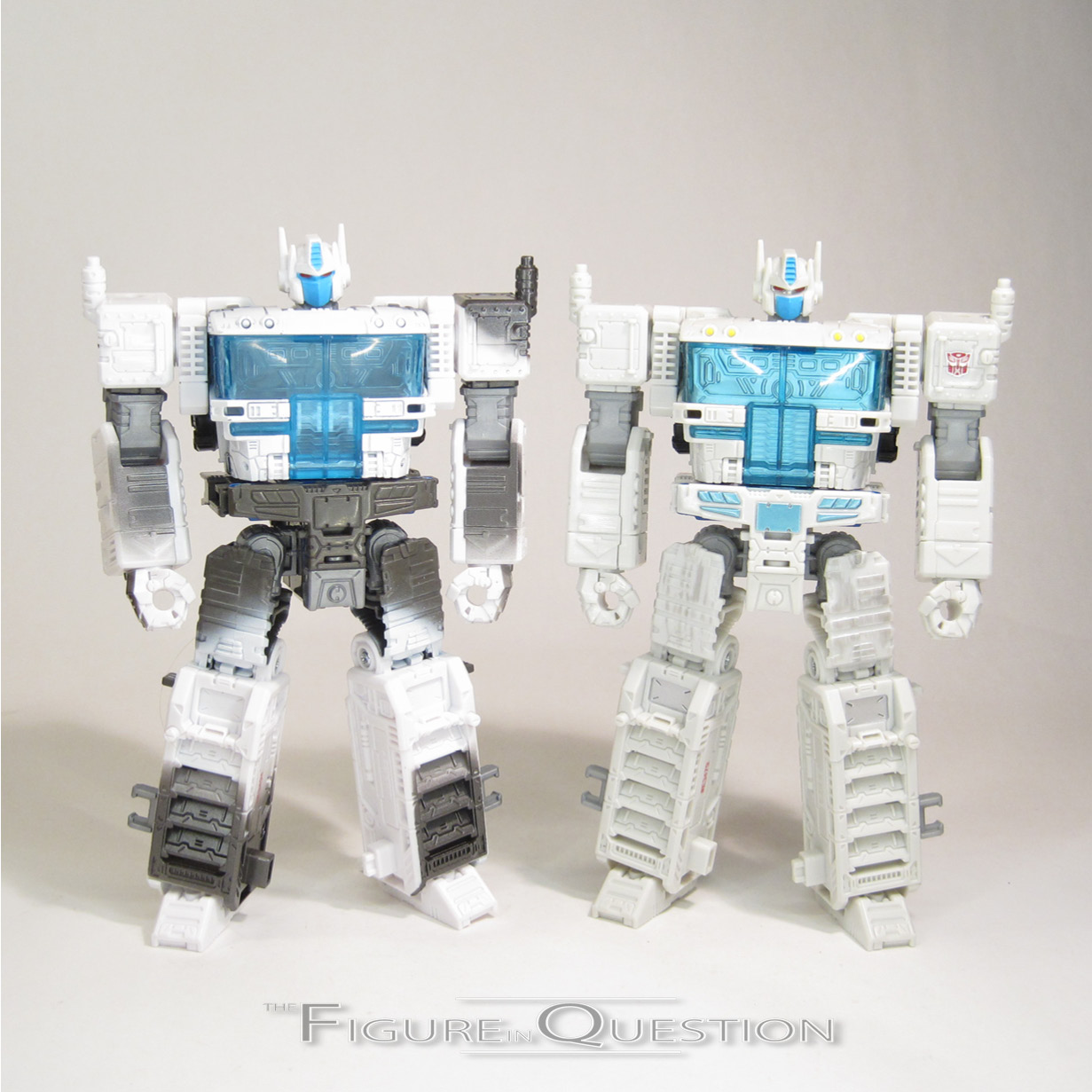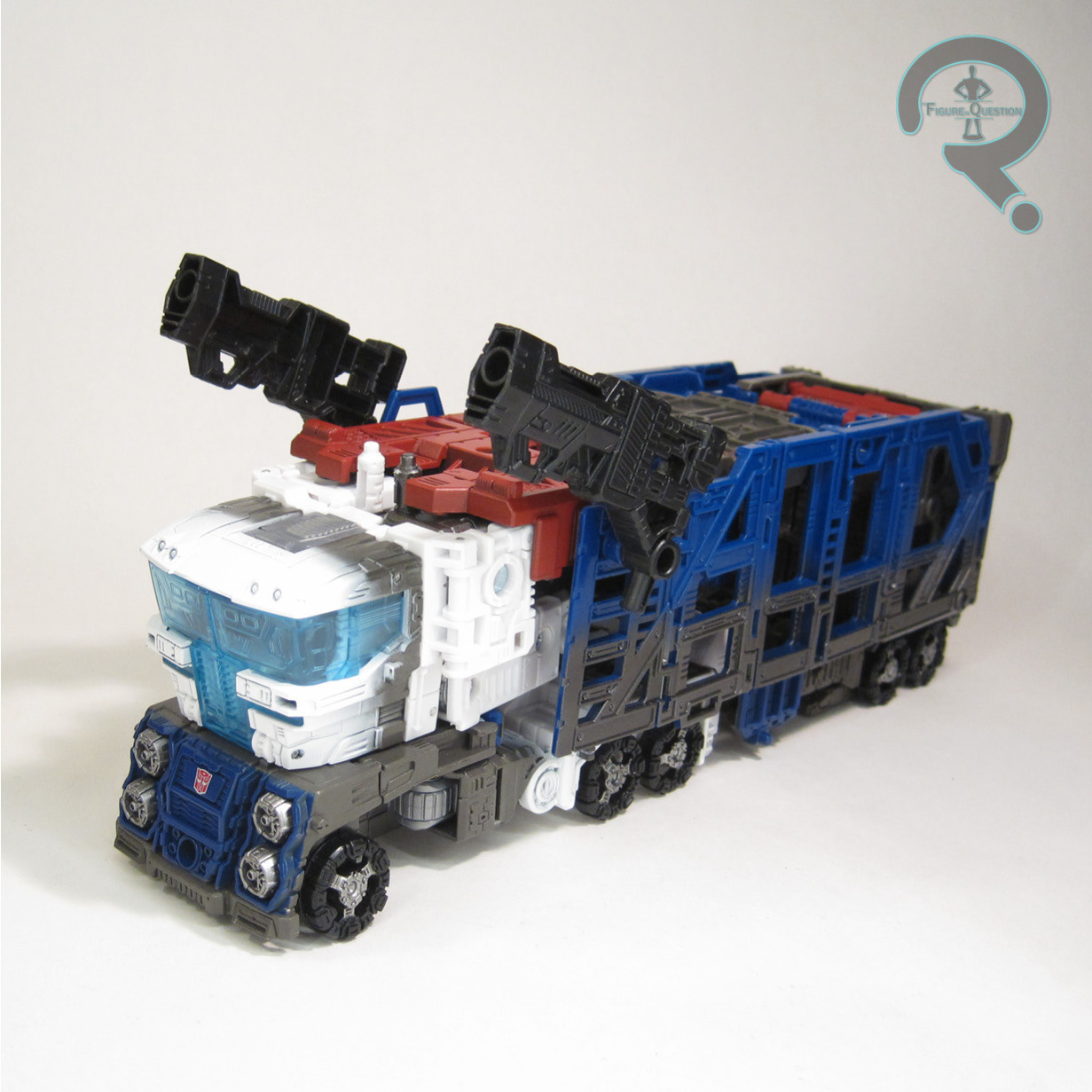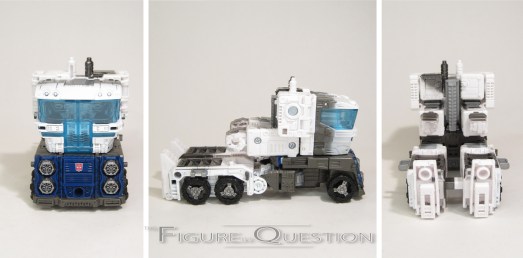 Since he’s the same mold, Magnus keeps the same inner robot set-up as the last figure, but again with some slightly tweaked paint colors. The straight white is even more noticeable here, as are the dark patches of grey. The windows of his truck cab no longer have the silver paint on their backs, so it’s just straight translucent. The blue on the head extends past the mask covering now, going under the eyes, which looks a little more striking, and he also loses his Autobot symbol on his shoulder. Spoilers? Probably not.