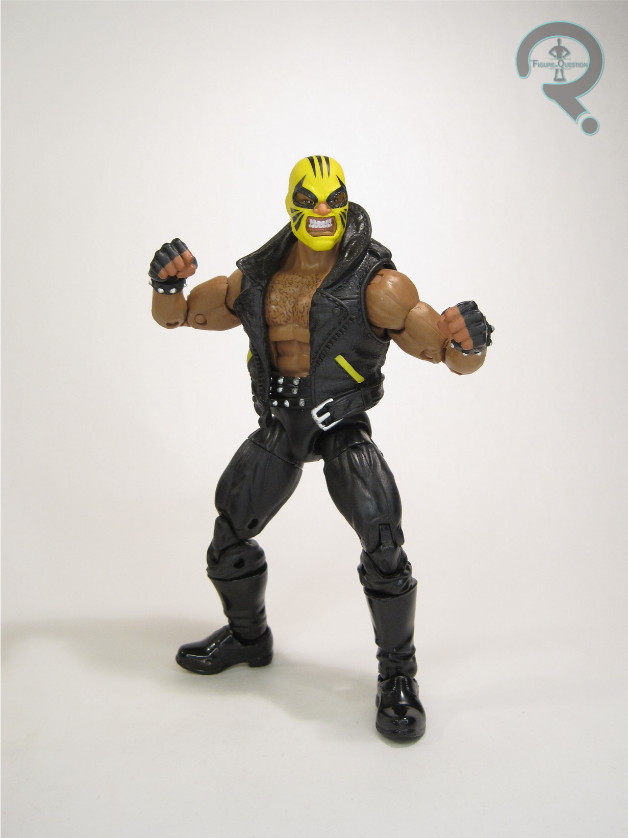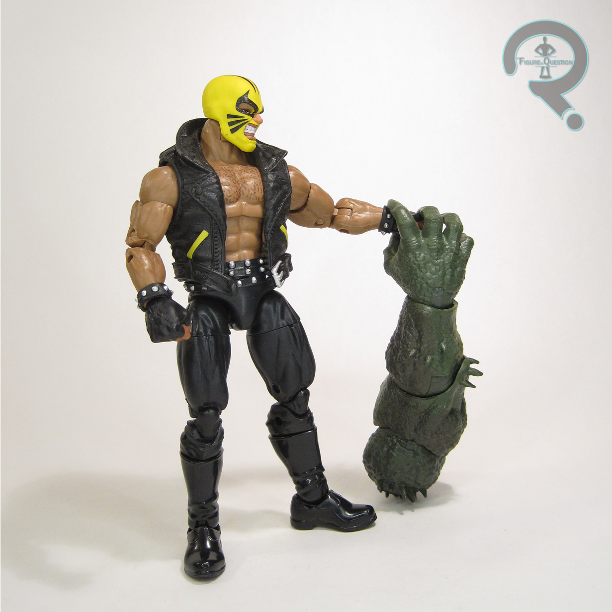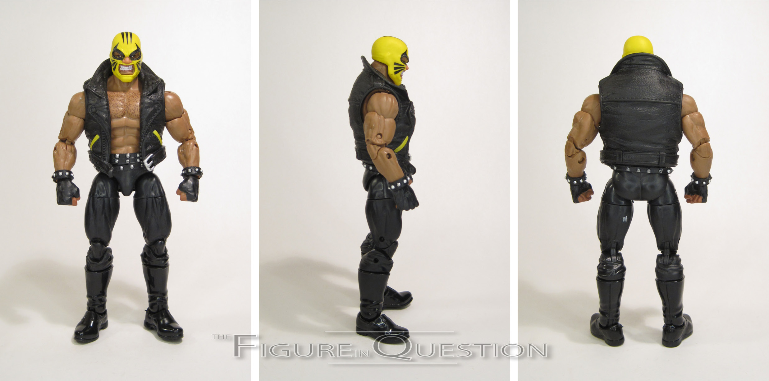 Marvel’s Rage, as this figure is rather humorously named, is the third of the four comics-based figures in the Gamerverse-centered Abomination Series of Marvel Legends. Like the smaller figure, this guy’s based on Rage’s original costume, which is honestly his best and most distinctive, so that seems pretty sensible. The figure stands 7 inches tall and he has 32 points of articulation. Rage is built on the Hyperion body, with the new lower legs from Crossbones, plus a new head, and add-ons for his wrist bands, vest, and belt. The new pieces are all nice enough. The mask is actually a separate piece from the head, and can be removed if you’re determined, though the underlying head isn’t designed to be looked at; it’s honestly a little frightening. The other add-ons have some nice, sharp texture work going on, especially the vest (which, incidentally, helps to hide that
