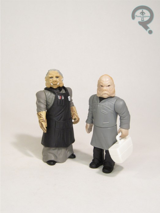 The Ugnaughts were added to the Power of the Force line in 1998, and were our second go at this particular race, following a figure in the vintage line. They joined Lobot in filling in some of the Bespin crew the year they were released. Much like the Jawas, Kenner took advantage of the Ugnaughts’ smaller stature to offer up a pair of them, rather than one single. The two included are distinctly different Ugnaughts, both of them from the film. The vintage figure actually amalgamated a number of elements from these two, before they were split apart for this release. Both figures stand 2 1/2 inches tall and each have 4 points of articulation (they’re articulation ceases below the waist). Both sculpts are completely unique parts-wise, though they do share the same basic pose and build. They hold up well given the time they were produced, and honestly wouldn’t look too terribly out of place with more modern lines. Of the two, I think the one with the smock is the slightly better offering, as the separate smock piece adds a little more depth, and his facial features are a little more distinct. He also pulls ahead a little bit on the paint front, thanks to a few more details, though it’s worth noting that both figures sport decent base level paint work. Curiously, the red-headed Ugnaught’s skin tone is molded, while the smock Ugnaught is painted. Not sure why they’re different, but they both look decent enough. The two Ugnaughts include one single toolbox for them both to share, as well as a freeze frame slide.