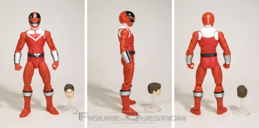Time Force Red is part of Series 5 of Hasbro’s Lightning Collection, and is both this assortment’s requisite Red Ranger and our first Time Force Ranger. The figure stands 6 1/4 inches tall and has 34 points of articulation. Surprisingly, Time Force Red is an all-new sculpt. Given how Galaxy Red was handled, I was definitely expecting this guy to be fairly re-use heavy. Obviously, I’m sure most of these parts will end up used again for the the other three male Time Force Rangers, but it’s nice to see them actually go to the trouble of mixing things up a bit with some new parts. I actually like how these parts turned out a little bit more well put together than some of the earlier parts. It’s definitely a slightly sleeker sculpt than the MMPR parts, which definitely suits the design aesthetic of Time Force in general. If I have one complaint about the sculpt, it’s that the helmet seems a touch wide, but it’s possible my memories of the old figures are playing tricks on my eyes with that one. It’s certainly not a *bad* sculpt, so I’m hard-pressed to really complain. His paint work is pretty clean, and is probably the best in this particular assortment, at least as far as my copies are concerned. It definitely works well with the more crisp and clean nature of the design, as I think paint errors would have been more of an issue here. Time Force Red is packed with his Chrono Blaster, a pair of Chrono Sabers, an effects piece, two pairs of hands (gripping and a fist/thumbs-up combo), and an unmasked Wes Collins head. The sabers can combine as in the show, resulting in a slight compromise to the handles when they’re separate. Still, it’s a cool gimmick. The thumbs-up hand is one the better alternate hands, and the unmasked Wes head is another strong likeness.