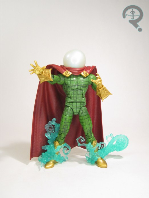 Mysterio is his own standalone release for the Retro Collection sub-line of Marvel Legends, released to coincide with the recent Spider-Man-themed assortment. Given how popular the last release was, singling him out was definitely the right call. The figure stands 6 1/2 inches tall and he has 32 points of articulation. Structurally, he’s *almost* identical to the prior comics Mysterio. It was a pretty decent sculpt, and also a largely unique sculpt, so seeing Hasbro get some more mileage out of it makes sense. It certainly looks impressive. I’m still not overly fond of quite how the cape/helmet piece attaches, but I’ve had time to make my piece with that. The only change to this figure’s sculpt is one that’s not evident at an outward glance: the head under the dome, which on the original figure was a skull/tentacle-illusion thing, has now been replaced by a sort of holographic Quentin Beck head (a repurposed Multiple Man head, for those that are curious). I can dig both ideas, but I think I personally prefer the Beck head. Beyond the un-helmeted head, the major change-up for this release is the paint work, which is, simply put, just a lot better this time around. The helmet is now mostly opaque, allowing it to more properly capture the classic Mysterio look, and the jumpsuit’s impressive quilted sculpt is now much better showcased by the more intense accent work going on it. Also, the gloves, boots, and clasps on the cape are all gold instead of light green, which is a slightly later look for the character but one that I think works better in toy form, as they add some extra pop to the figure. Additionally, this figure avoids the clashing plastic colors of the last release, which again help him to just look a bit cleaner. Mysterio includes the two effects pieces for his feet, which are essentially the same between the two releases.