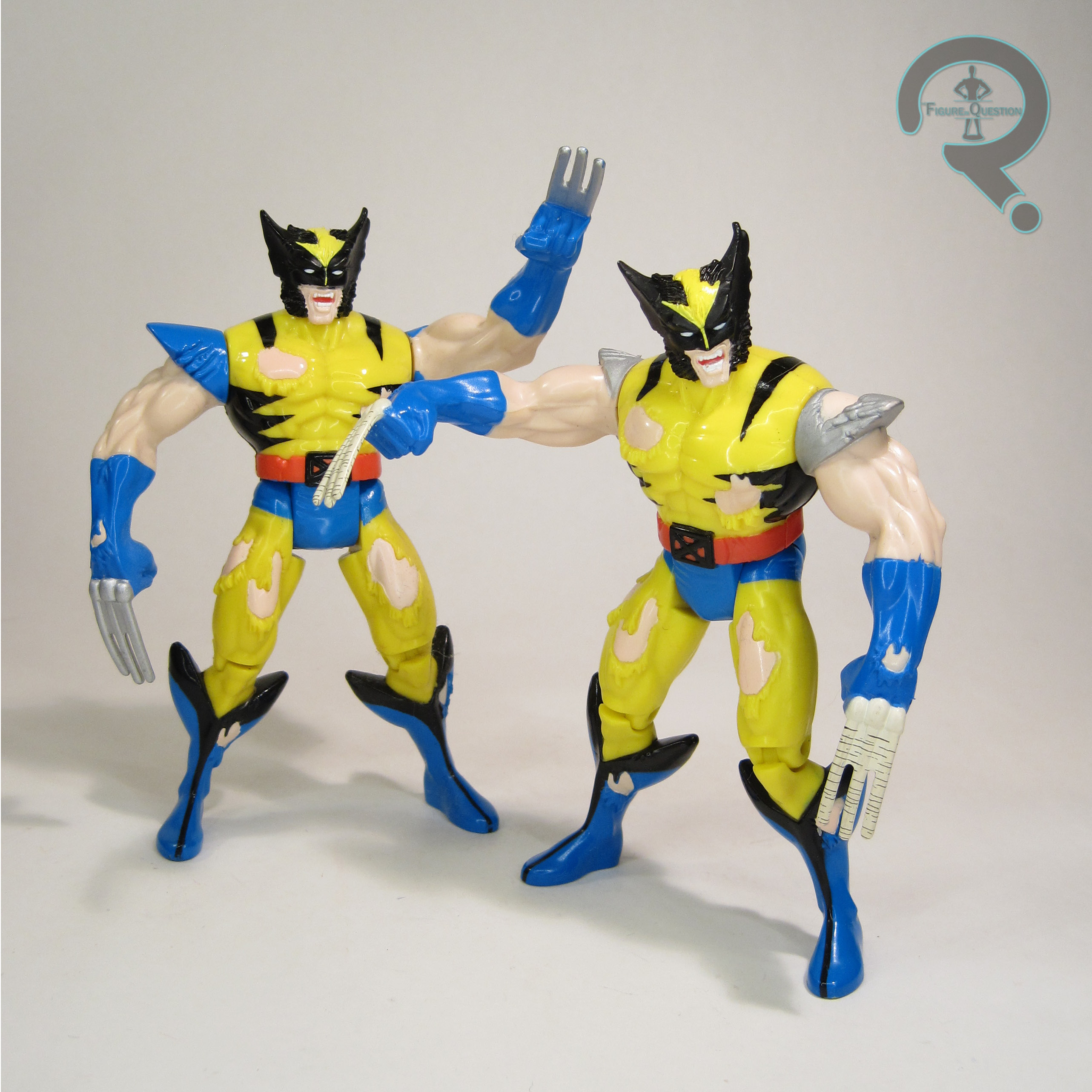 Battle Ravaged Wolverine was released in the Invasion Series of Toy Biz’s X-Men line, the eleventh series of the line. Truth be told, it’s probably my favorite series of the line, for reasons I’ll get to in the relevant section. The concept on this guy is pretty straight forward: take the basic Tiger Stripe Wolverine design, and just tear it to shreds, as if in battle. The figure stands 5 inches tall and he has 7 points of articulation. While I didn’t look at this figure proper during the Day of the Wolverines, I did look at his sculpt, which was re-used in the 1997 “Greatest Archenemies” set. As I noted in that review, it’s a sculpt I actually quite like. It’s a little on the large side for a Wolverine, but the build actually works pretty well, and the battle damage is quite well implemented throughout the figure. There’s a great intensity to the sculpt on this guy, and I just really dig it. The paintwork is really the main differing thing here, as it gives him a more classic color scheme than the later release. It works a lot better, and just results in a nicer overall figure than the later release. There’s actually another repaint of this guy, released as part of 1996’s KB Toys-exclusive Overpower line. It tweaks the coloring on the claws so that they’re now bone claws, and also makes the shoulders silver….for some reason. I guess they really needed to keep that silver paint quotient up. The original release and all subsequent re-uses of the mold had a “Berserker Rage Action” action feature, which slashes the arms downward when you push the lever on his back. The original release also featured a set of doors, which you could use the action feature to “split” and knock down. It’s very basic, but a cool extra piece of scenery.
