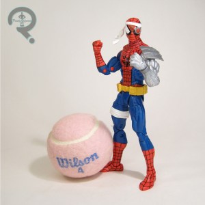 Cyborg Spider-Man is another Target-exclusive Retro Collection offering from Hasbro’s Marvel Legends. He hit shelves at the same time as Gambit and Rogue, and was joined by another Spider-Man variant that I haven’t yet picked up. This guy marks the third toy of this particular design, after the two I listed in the intro above. The figure stands 6 1/4 inches tall and he has 34 points of articulation. Spider-Man is built on the 2099 body, but there’s actually more new parts than you might expect. Obviously, the arm is all-new, as is the head, and the add-ons for the bandage on the leg and his utility belt. The most surprising of the new parts is the new upper torso. I’m not really sure *why* it’s new, since it seems like the standard 2099 piece would work just fine, but it’s a little different, seemingly for the sake of being different. Whatever the case, it’s a good selection of parts. The arm is definitely the star piece, with a lot of nice, crisp detail work going on there. The shoulder pad is a separate, glued in place piece, and time will tell if it’s as prone to breaking off as the old ’90s one was. Spider-Man’s paint work is all pretty straight forward stuff. He’s got the basic Spidey paint scheme, which goes pretty well for him. Application is clean, and the cybernetic parts look pretty nice as well. This guy is packed with two right hands (in fist and thwipping…open gesture’s just gone, I guess), as well as a web strand. The strand is the same one that’s been floating around for a few years, and it’s not really the best fit for this particular release. Still, I won’t complain about getting more parts.
