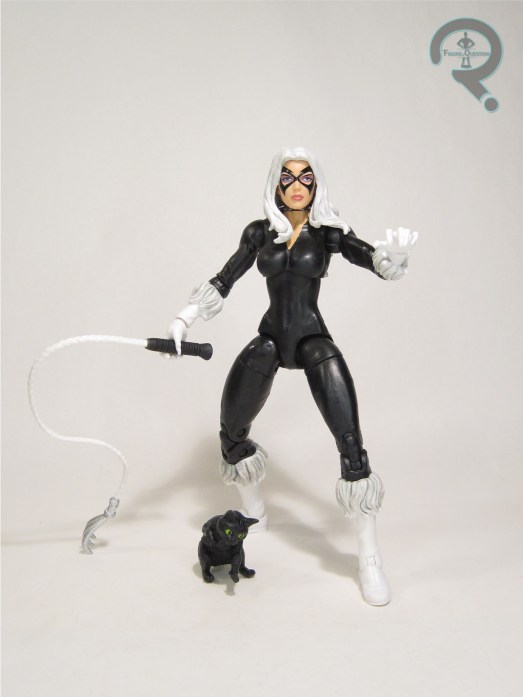 Black Cat is part of the Spider-centric Retro Collection sub-line of Marvel Legends. At this point, Hasbro doesn’t really seem to be focussing on assortments for this style, so much as just dropping new figures one at a time when they feel like it. Black Cat was, subsequently, her own solo release. Black Cat has had a few looks over the years, and she pretty much gets a different one every time she gets a new figure. This one in particular goes for her early ’90s variant on her classic look, which was also the design used for her appearance in Spider-Man: The Animated Series. That’s proved a major influence on most of these Retro Collection figures, so it’s a sensible choice. The figure stands 6 1/4 inches tall and she has 29 points of articulation. The vast majority of this figure’s parts come from the Skyline Sirens version of the character from 2014. That one was built on the Moonstone base body, and generally did a decent job of capturing Black Cat’s usual figure. It’s not quite as well articulated as more recent bodies, however, which can be a bit of an issue when it comes to posing. My figure in particular wound up being rather bow-legged. Since this version of the costume doesn’t have the fur collar, the figure swaps out the upper torso for the basic Moonstone body piece. She also borrows the calm head from the Dark Phoenix figure, as well as the studded collar from the Hellfire Club Black Queen figure. She’s really going for that evil Jean Grey vibe, I guess? The head sits a touch low on the neck, but overall it’s a nice selection of parts, and adds up to a decent recreation of the design they’re going for. It’s amazing what you can do with nothing but re-used parts, huh? The paint work on this figure is overall pretty basic and straight forward. I do like how crisp and clean the detailing on the face and mask is, and the very slight accenting on the fur works quite well to showcase the sculpt. It certainly looks a bit better than the blue from the earlier figure. Black Cat is packed with the same whip as the Sirens figure (albeit in different colors), and a recolored version of Goose, this time as a…black…cat. Actually having a cat’s more of a Catwoman thing than a Black Cat thing, but she’s already copying DC’s homework, so let’s just roll with it.
