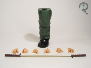 years. The design is pretty well replicated here, and there’s a lot of work going into the texturing and patterning on his tunic, which certainly helps to keep him from looking too bland. The head’s likeness to Simu Liu isn’t quite as spot-on as other, more recent MCU likenesses. Like, it doesn’t look entirely unlike him, but there’s definitely enough differences to make you feel like something’s off. The head just feels too wide to me, and the hair’s a little too tidy, as well as parted on the wrong side, at least from what we’ve seen so far. It’s far from terrible, though, and certainly nothing like Hasbro’s first attempts at some of the other big MCU actors. Shang-Chi’s paint work is generally pretty cleanly handled. There are no obvious missing details, application is fairly consistent, and the face printing is fairly lifelike. In terms of accessories, Shang-Chi is packed with three sets of hands (gripping and two different styles of gesture; curiously no fists), a staff, and the right leg of the Mr. Hyde Build-A-Figure. While the lack of fists is weird, I’m otherwise happy to see them keep up with the extra hands that the last Shang-Chi got. Extra hands are always extra cool.