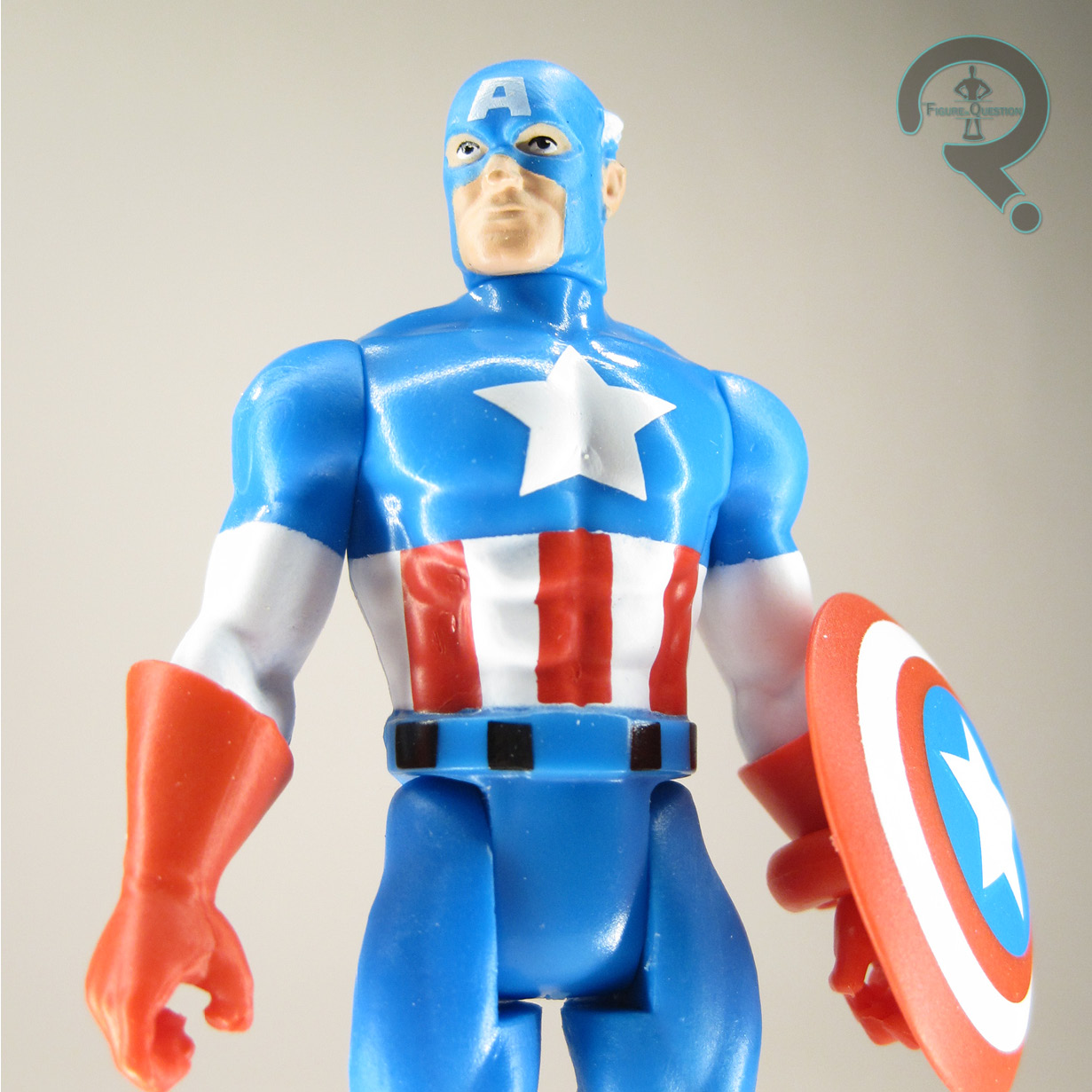 open) Once you’ve destroyed the beautiful work of art that houses the figure, you’ll find that he stands about 3 3/4 inches tall and he has 7 points of articulation. He’s got the usual Kenner 5POA, plus swivels at the wrists, which is kind of nifty, I suppose. The extra wrist joints are more there because the gloves need to be separate pieces (as do the boots, though they aren’t articulated) due to the construction of the figures in the line. A number of them are built from a base body, which Cap makes use of. It’s a rather basic hero build, and it works perfectly fine for the figures we’ve gotten so far. The boots are shared with Cyclops, but the head and gloves are unique to Cap at this time. They’re decent enough pieces, though not exactly heavy on detailing. Despite the lack of said detailing, it’s worth noting that they don’t really fall into the classic Kenner stylings either. He occupies something of a middle ground, placing him more on par with Hasbro’s more recent 5POA Star Wars figures than Kenner’s. It’s not a bad look, mind you, but it just further pushes the question of what the heck the audience for these figures is supposed to be. Cap’s paint work is fairly basic, but that’s to be expected. There’s a little bit of slop on some of the transitions, but for the most part, it works pretty well. Cap gets one accessory: his shield. It’s a bit on the smaller side, but that’s kind of expected, I suppose, given the scale and style. What I found kind of weird is that, even though there’s a peg hole on his back, there’s no peg on the shield, so it can’t be attached that way.