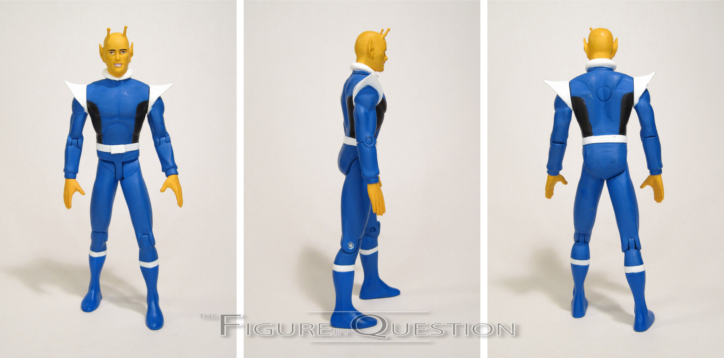 Chameleon Boy is the final figure in the Series 3 line-up for DC Direct’s Legion of Super Heroes line. He’s the most unique looking of the bunch, which was honestly true of Chameleon Boy in the earlier Legion run, too. The figure stands just shy of 6 inches tall and he has 11 points of articulation. Chameleon Boy uses a mix of prior base body parts, using the core of the Series 2 body, with the upper arms that he shared with this assortment’s Sun Boy figure, and the looser fitting lower arms of Brainiac 5 and Mon-El. Also, in keeping with the mix of hand poses, his are both open, which is a first on this body. He’s got a new head, which does alright with capturing the more alien features of Reep’s design, but feels somewhat off for the character when you get to the face. He just seems to have too dull an expression, if I’m honest. My figure is unfortunately saddled with a QC issue, as well; his left thigh is actually a right thigh, just backwards, most notable from the weird shaping near the hip, where it’s supposed to contact with the backside of his torso. The more simple nature of the sculpt means it’s not the worst thing ever, but it’s very definitely wrong. Chameleon Boy is another all painted figure. It works out okay, but again there’s the issue with the scuffing going on. Otherwise, the paint’s pretty decent, I guess. Chameleon Boy has no accessories, but unlike the other figures in the line that also had no accessories, this one feels like more of a loss, because it feels like the perfect opportunity to give us his sidekick/pet Proty. Alas, we’d have to wait on Mattel for that one.